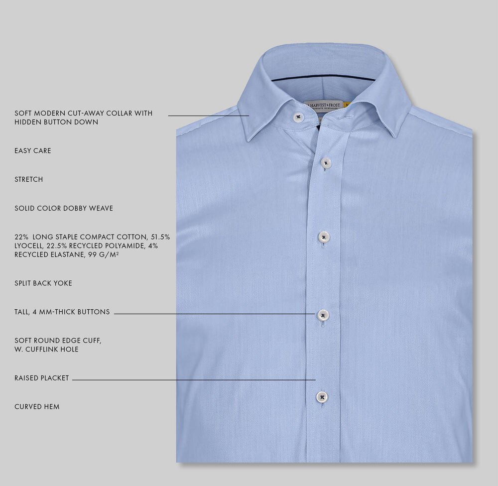 Skjorten er ensfarget med en subtil dobby-struktur. Når du får skjorten i hånden vil du umiddelbart kjenne at denne er mer enn bare et blikkfang. Først vil du legge merke til den fjærlette vekten, så den silkemyk følelsen fra lyocell, og så den utrolige stretcheffekten. Alt dette for å sikre maksimal komfort. Skjorten er easy-care behandlet.