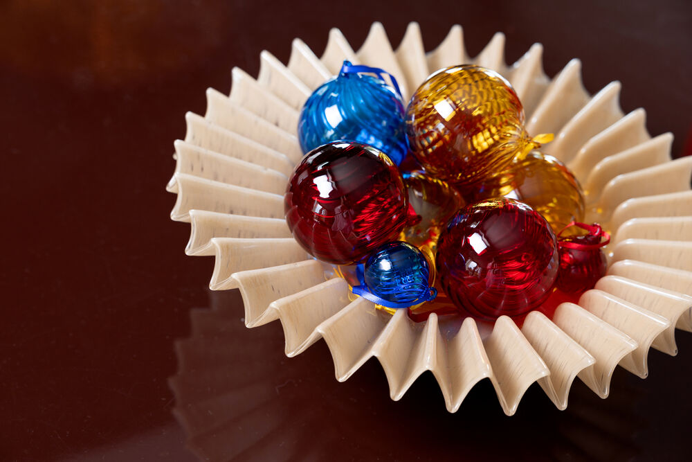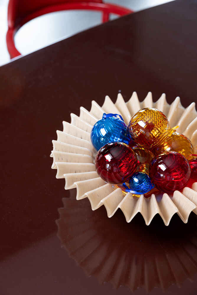 De vakre, luksuriøse og utvilsomt dristige Opacity-julekulene vil fremheve ethvert juletre og er ideelle for feiringer året rundt. De er laget av fint glass med et subtilt stripete mønster som minner oss om den elskede Opacity-serien, og utstråler eleganse i hver eneste detalj. Disse kulene finnes i to størrelser og tre sofistikerte farger, og kan kombineres kunstferdig eller velges enkeltvis for å matche julepynten din. Det lille settet inneholder fire kuler, mens det store settet inneholder to, alle pakket i en elegant gaveeske. Med matchende satengbånd er disse kulene et ekte designstatement. Designet av Byon Studio. Leveres i en Byon-eske som sikrer at alle detaljer er like raffinerte som kulene selv.