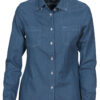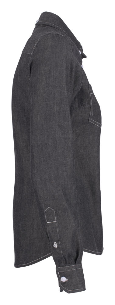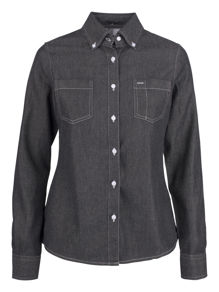 Denimskjorte til dame. Button down krage og justerbare mansjetter. Brystlomme på begge sider. Rutemønstret kontrast på innsiden av bærestykket og i mansjettene. Lett innsvinget modell.