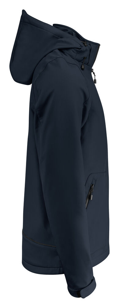 Softshelljakke med avtagbar hette. Regulerbare snorer i nedekant og velcro-stropper i ermavslutning. Reflexpiping bak for bedre synlighet. 3000WP/ 3000Mvp.