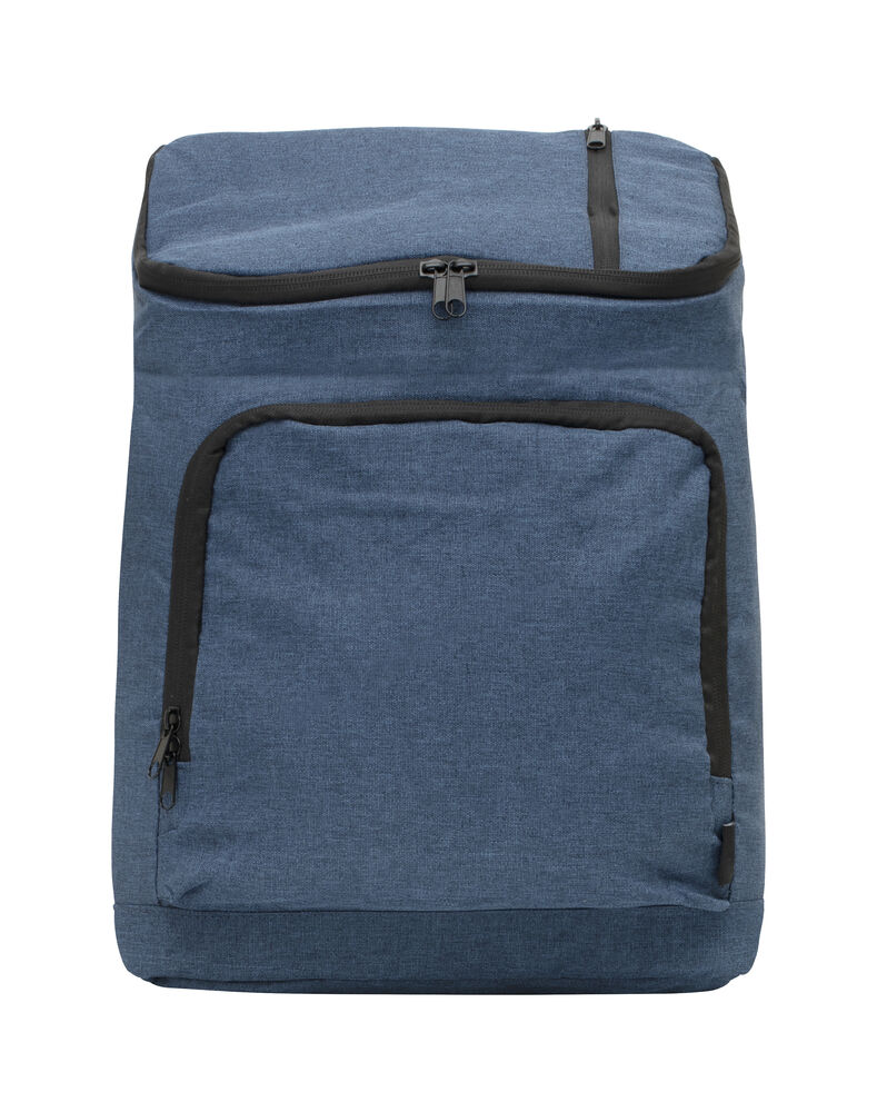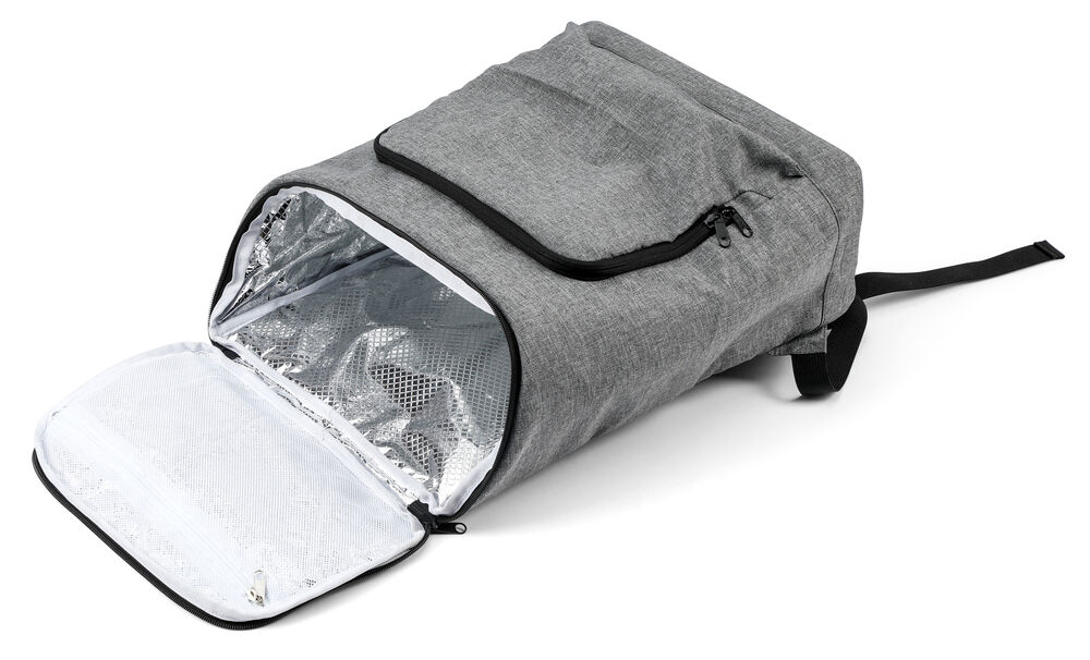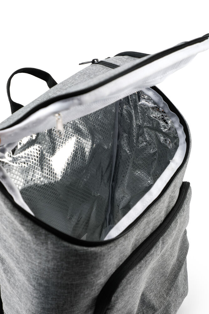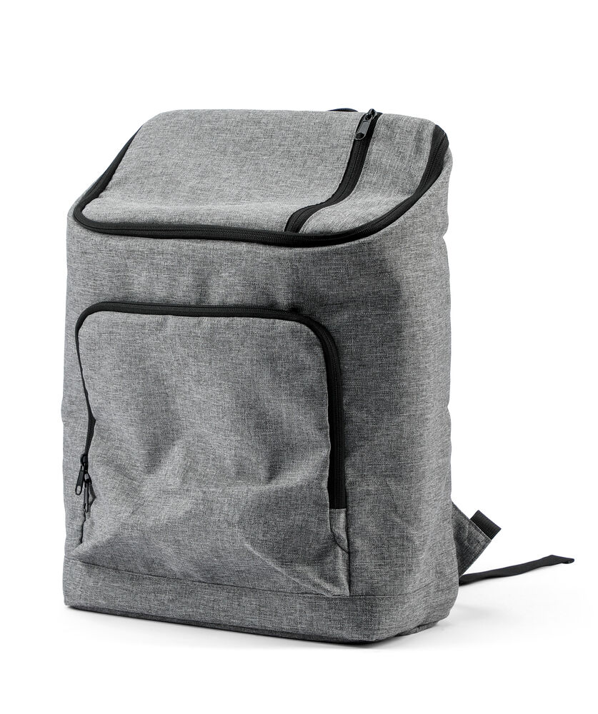 Romslig kjøleryggsekk med en større lomme foran og en mindre lomme på toppen av sekken.