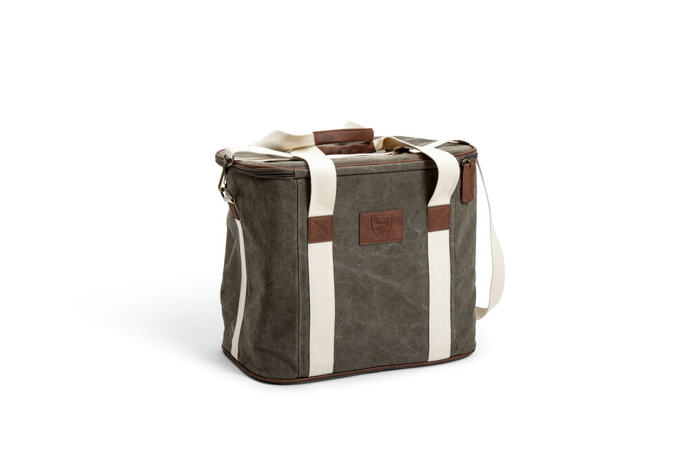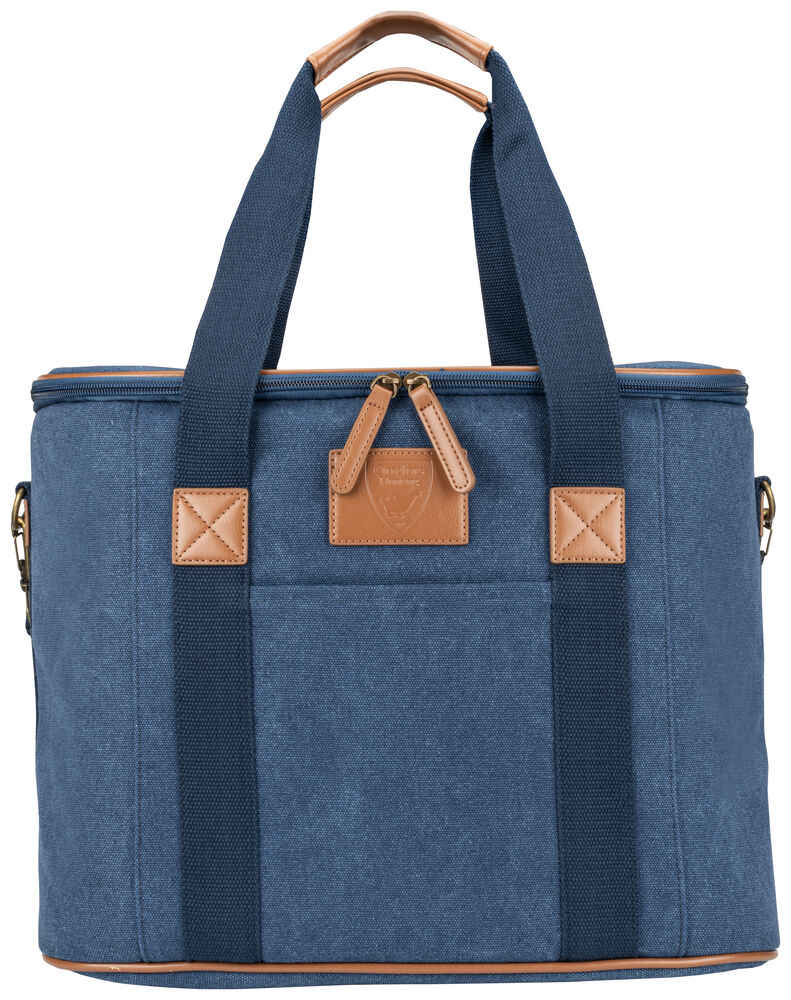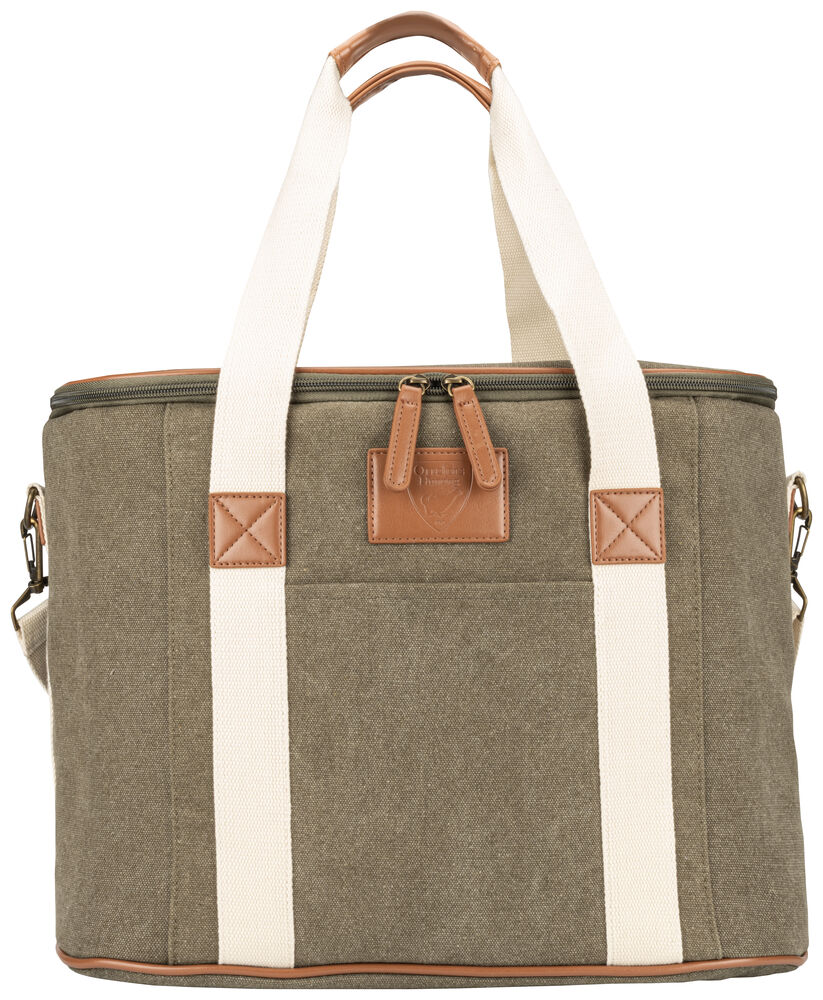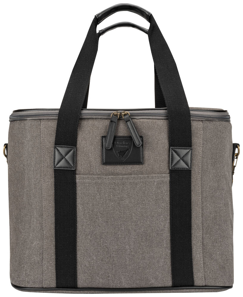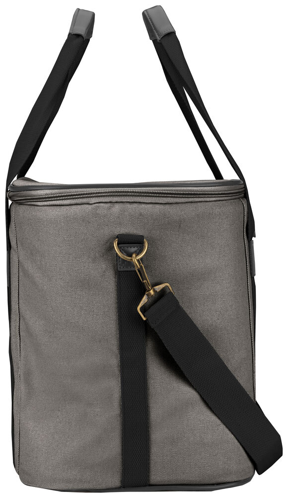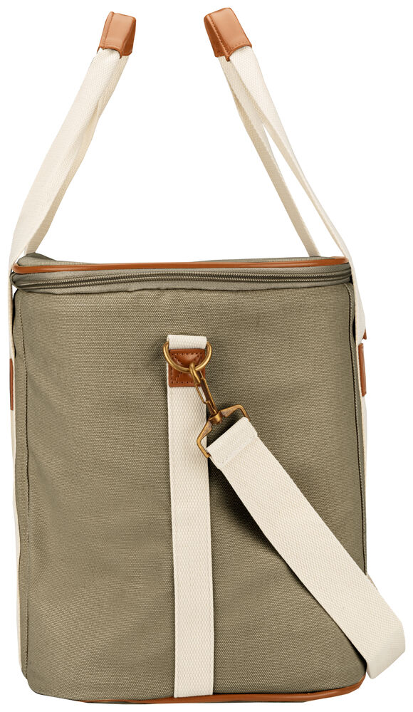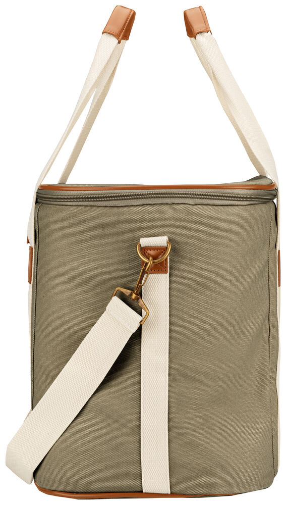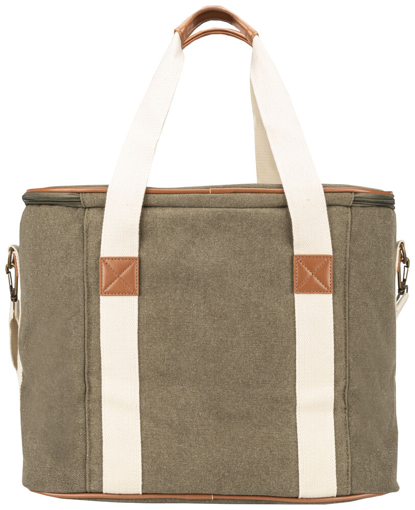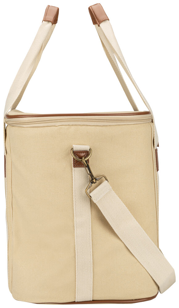 Kjøleveske i grov canvas med justerbar skulderrem og gode håndtak. Detaljer i PU-lær.