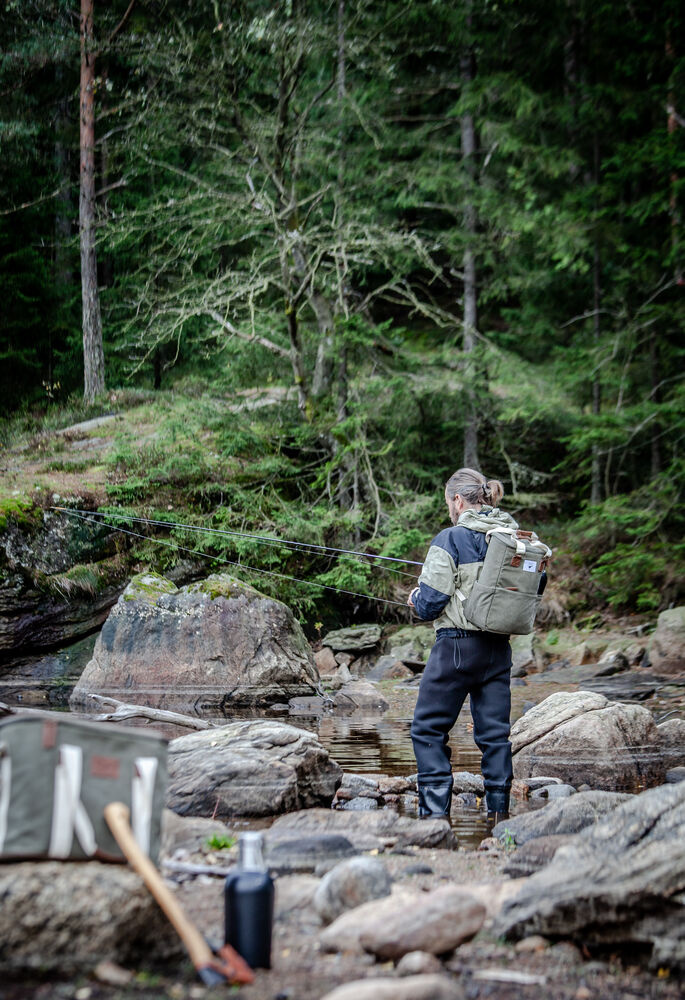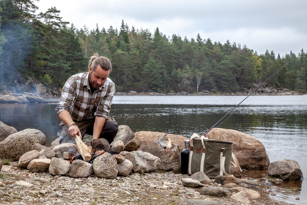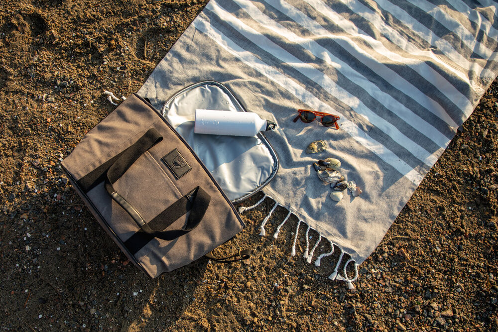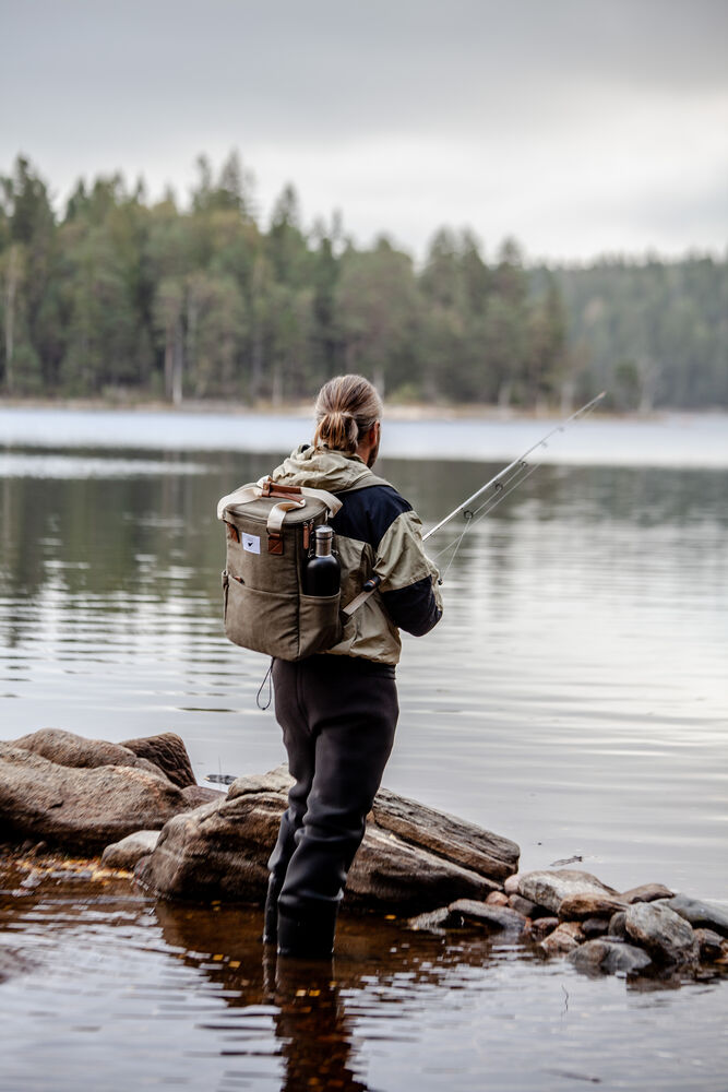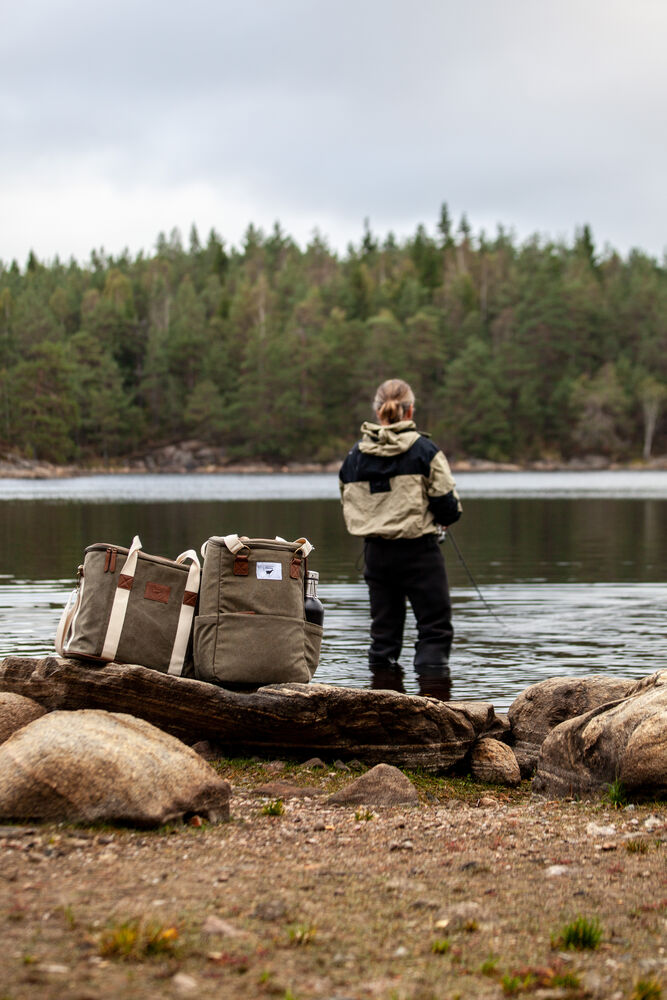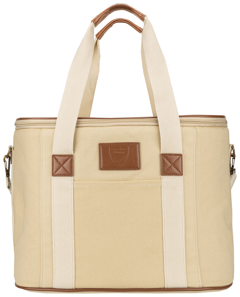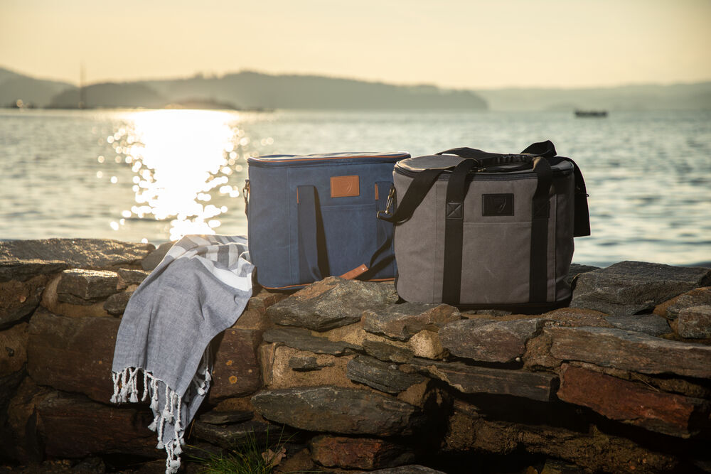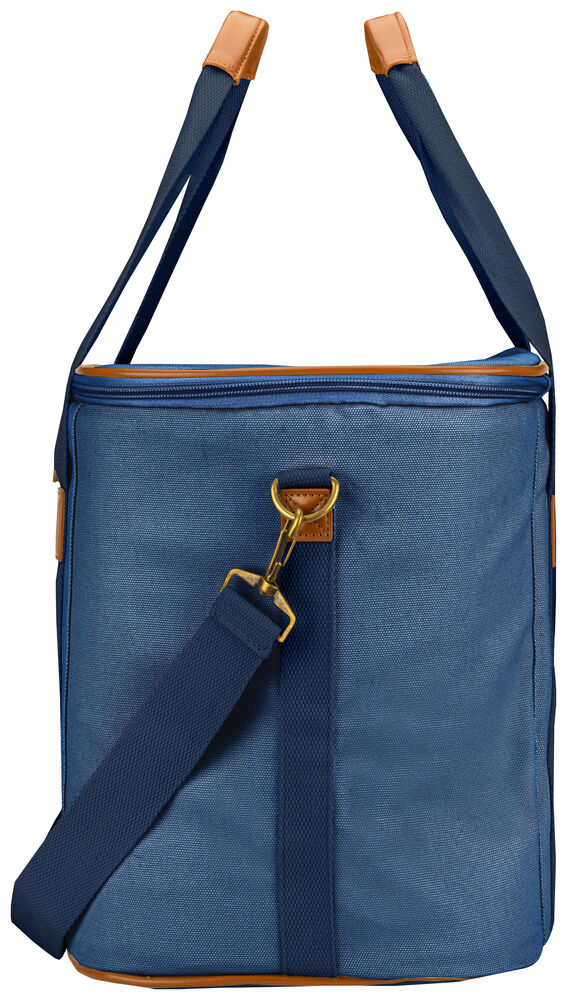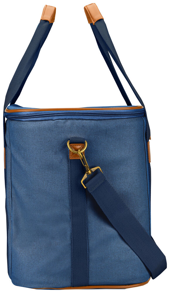 Kjøleveske i grov canvas med justerbar skulderrem og gode håndtak. Detaljer i PU-lær.