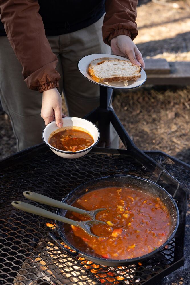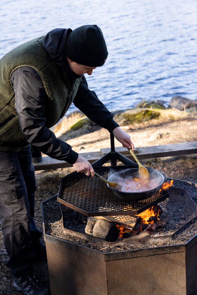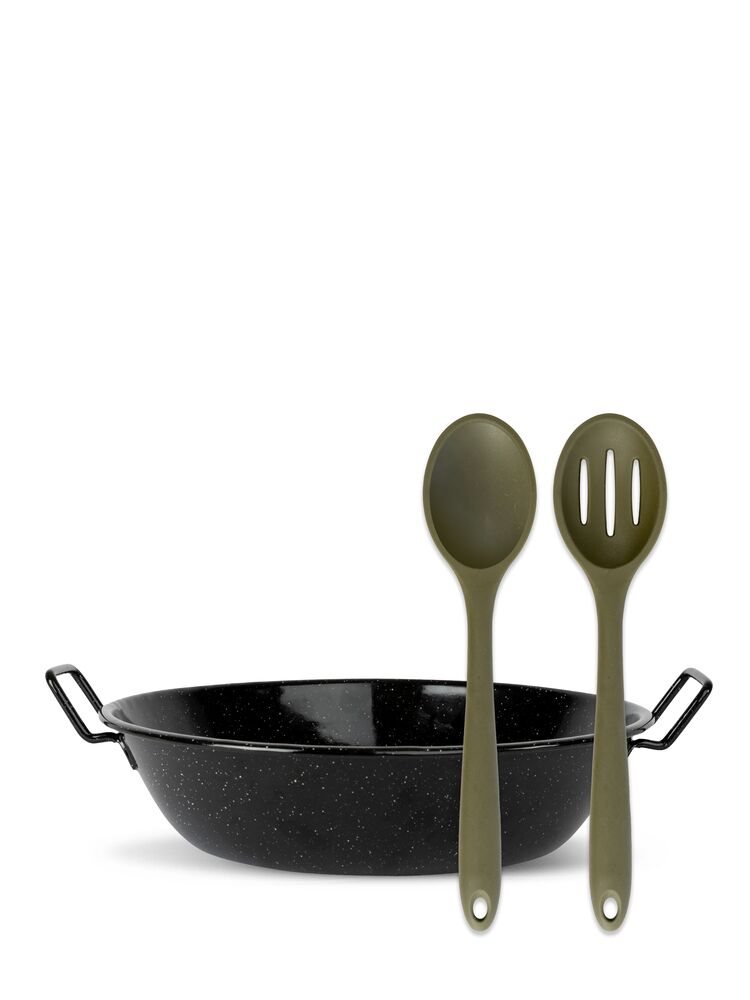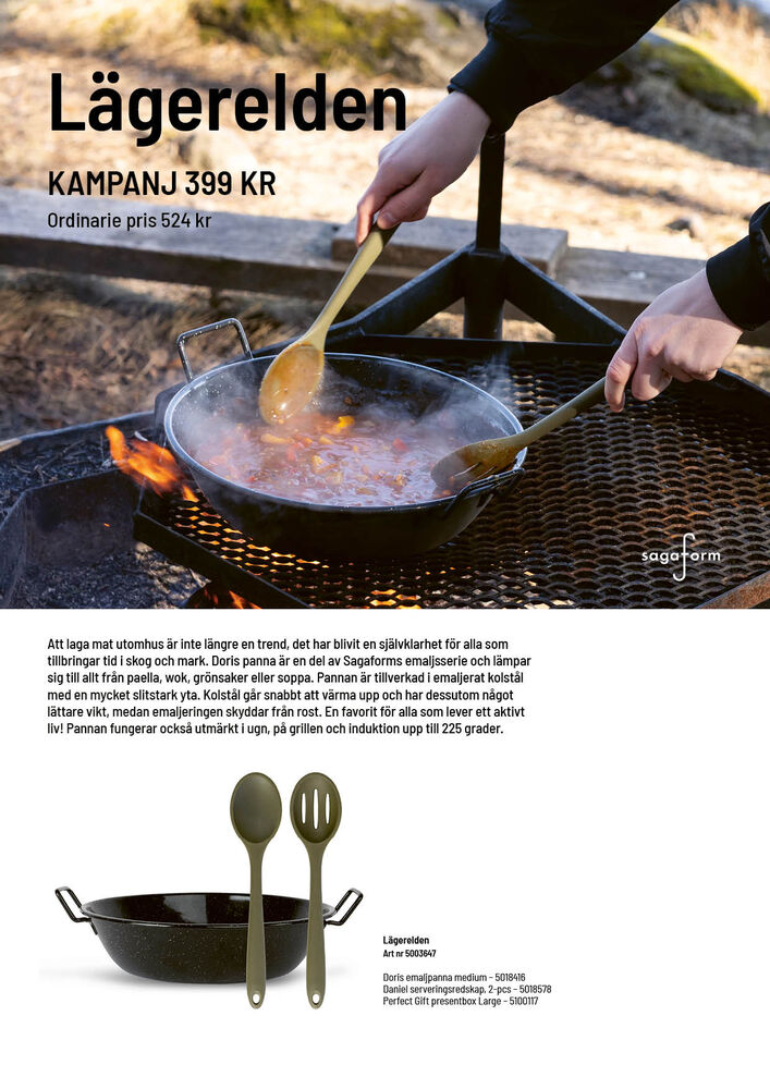 Å lage mat utendørs føles alltid spesielt. Maten smaker alltid bedre ute! Med dette settet gjør du det enklere for mottakeren å komme seg ut og prøve tilværelsen som utendørskokk. Doris-pannen er en del av Sagaforms emaljeserie, og passer til alt fra paella, wok og grønnsaker til suppe – alt du ønsker å tilberede over åpen ild. Pannen er laget av emaljert karbonstål med en meget slitesterk overflate, og leveres sammen med to serveringsskjeer i tre fra Nature-serien. Pent pakket i Sagaforms Perfect gift box, large.