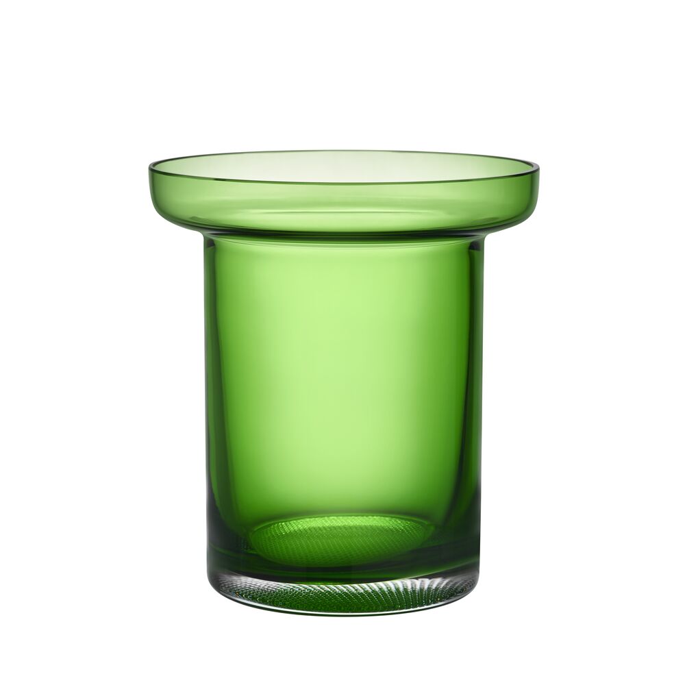 Limelight-serien fra Kosta Boda kjennetegnes av en solid base og et dekorativt og subtilt mønster med en lysspredende effekt som får delene til å skinne. Den grønne tulipanvasen har en bred krage som rammer inn og fremhever enhver bukett. Vasens litt lavere form passer til et bredere utvalg av blomster. Design av Göran Wärff.