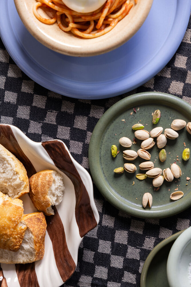 Porto asjett er en sjarmerende liten tallerken med mye karakter, tilgjengelig i et ekstravagant utvalg av farger som vil sette et personlig preg på borddekkingen din. Fås i rød, gul, mintgrønn, blå, matt mørkegrønn og matt brun. Asjetten er håndlaget i keramikkmekkaet Portugal, og har et tidløst design med en grov kant som føles både dristig og selvsikker. Hver asjett gir en unik opplevelse takket være den reaktive glasseringen, som gir hver tallerken sitt eget liv og personlighet. Asjettene er håndlaget med omhu, noe som betyr at fargen kan variere fra asjett til asjett. Størrelse: ø17 x 2 cm. Design Byon Studio. Laget av steintøy. Tåler oppvaskmaskin og er sikker for matservering.