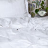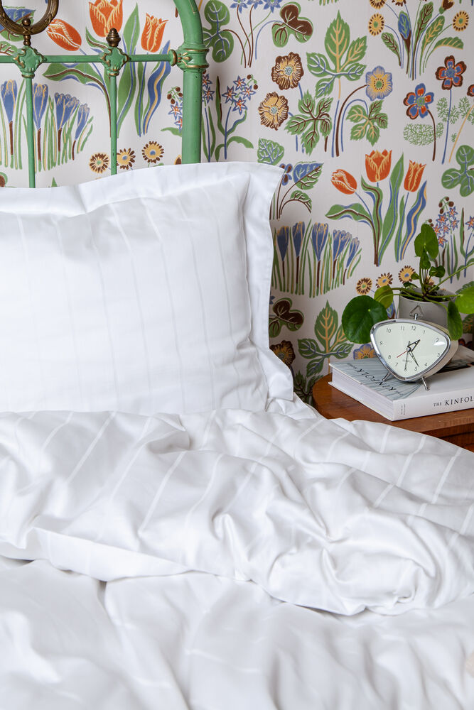 Eksklusivt sengesett av bomullssateng, litt høyere trådtetthet enn vanlig satengsengeset. Sammen med en smal kant ton i ton gjør sengetøyet lukseriøst og mykt. Kommer også i king size som inneholder to putetrekk.