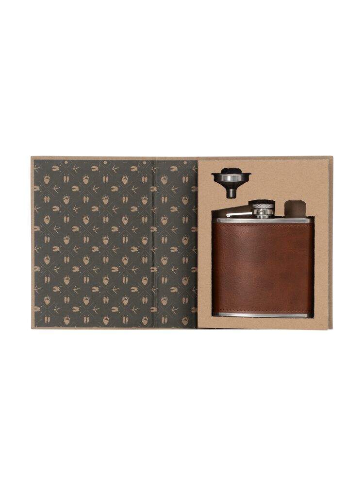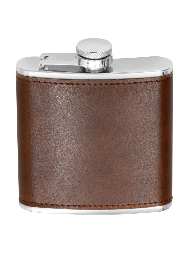 Tynn, smidig og lett å stikke i lommen. PU-lær i varm brun farge gir en luksuriøs følelse, mens rustfritt stål holder drikken ren og frisk.