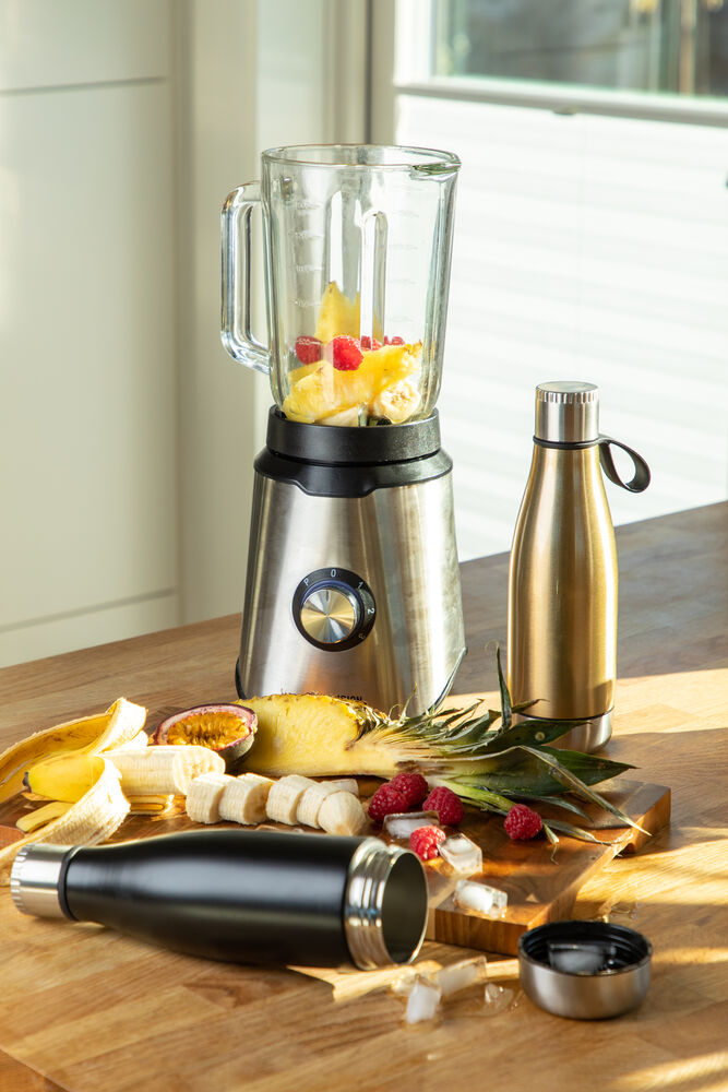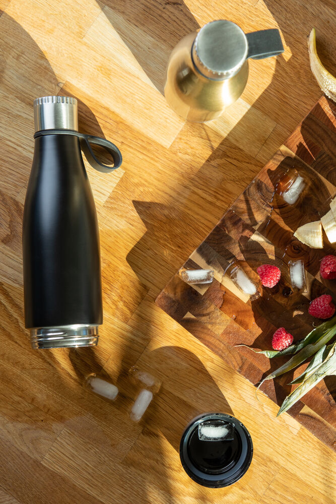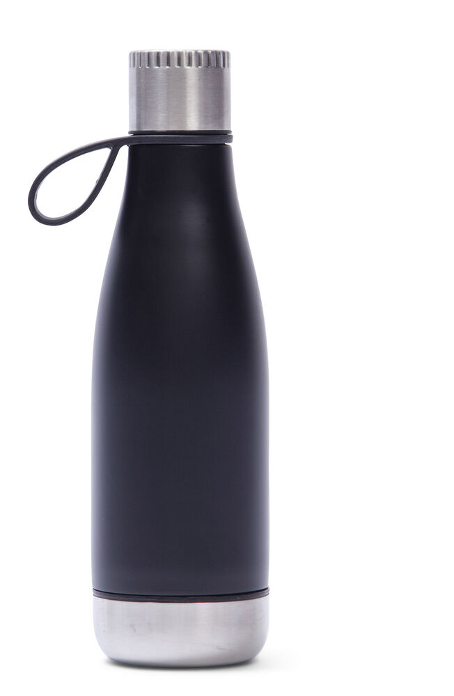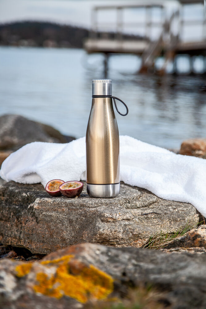 Termoser som holder på varmen er et velkjent fenomen. Her har vi en stålflaske med motsatt funksjon, den holder drikken din kald. Flasken har doble vegger og en skrubar bunn slik at du kan fylle den med is for å optimalisere avkjølingen i mange timer fremover. Den kan også fylles med frukt som gir en god smak på vannet. Flasken er laget av stål som vil vare i mange år fremover, og den tåler ett og annen støt uten problemer.