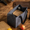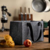 En lunsjveske gjør det enkelt å ha med seg matpakken. Laget av mykt filtstoff av 100 % R-PET. Vesken veier lite og er lett å håndtere. Rommer dagens matboks og enda litt til! Håndtakene gjør den lett å bære med seg, og etter bruk kan den enkelt brettes sammen.