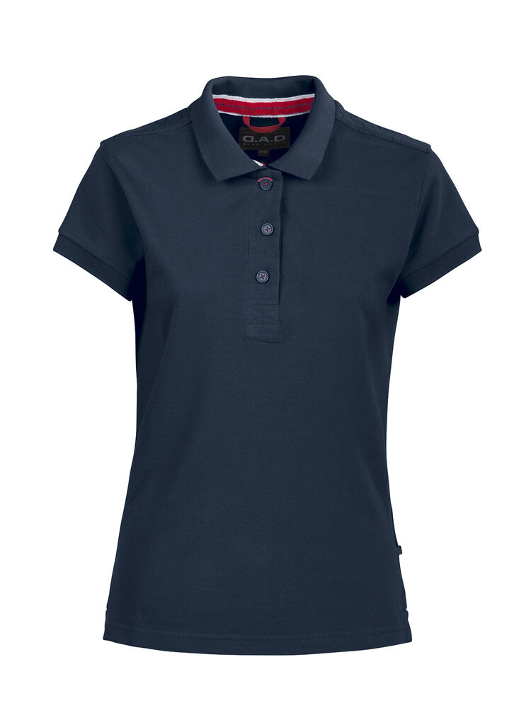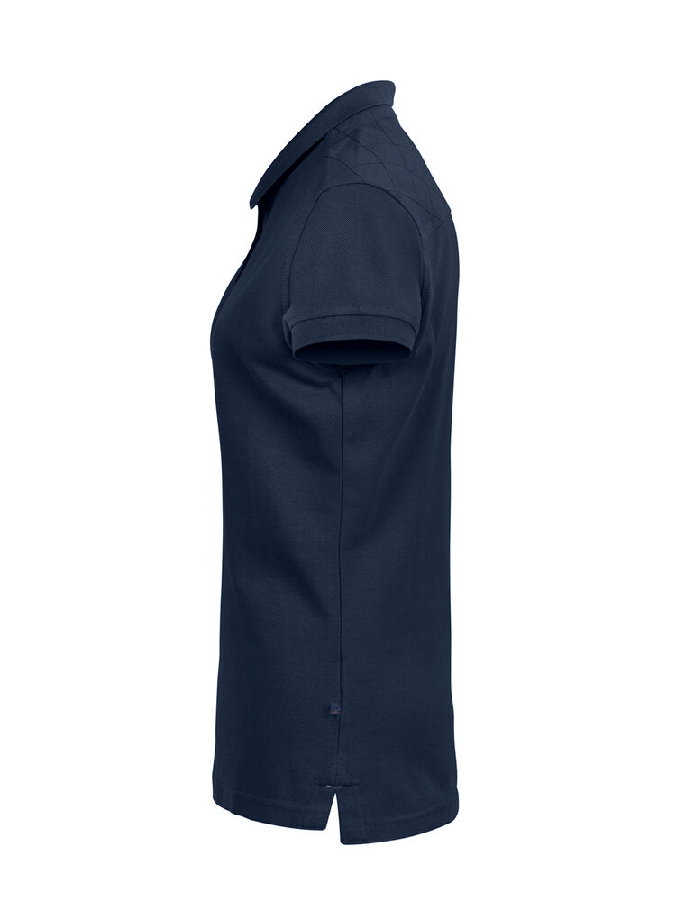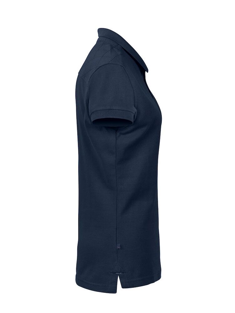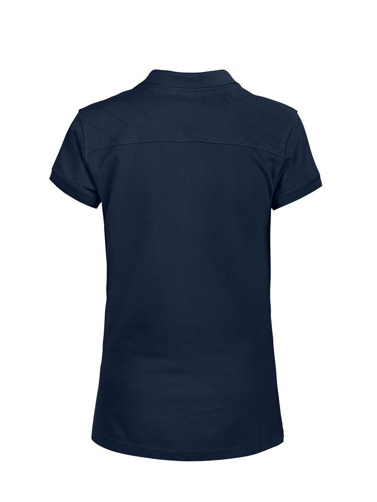 Velarbeidet pique med kontrastfargede detaljer. Dekorativ strikk på skulderpartiet. Kraftig dobbeltstrikket krage og matchende dekorbånd på innsiden.