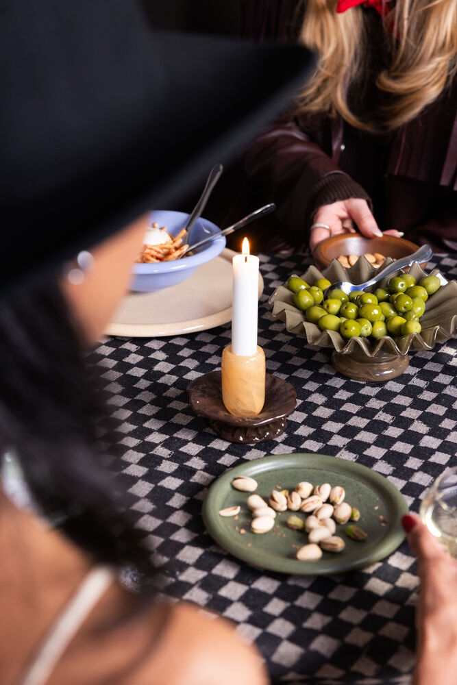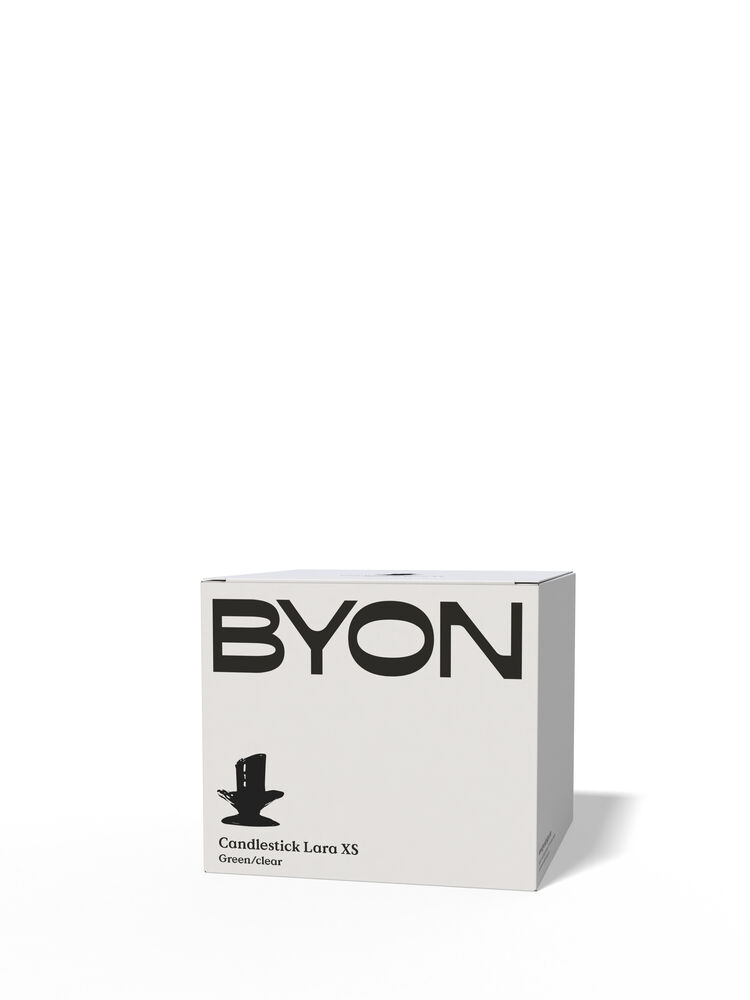 Lysestaken Lara XS er, akkurat som sine søsken, både ekstravagant og nydelig. Denne mindre versjonen minner om små søte praliner eller makroner – noe man virkelig kan elske. Svart og beige, oransje og brunt, samt grønt og klart kombineres med livlige, myke farger som sitrongult, mintgrønt og havblått. Perfekt å blande i lekne kombinasjoner eller sammen med sine større søsken. Foten og toppen er formet som en blomst og fanger stearinet som renner over lyset, som en innebygd mansjettholder. Laget av munnblåst glass som fører tankene til klassisk glasskunst. Håndlaget. Farge- og strukturforskjeller kan forekomme. Design Byon Studio. Leveres i Byon-eske.