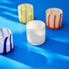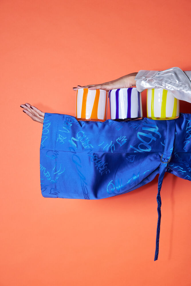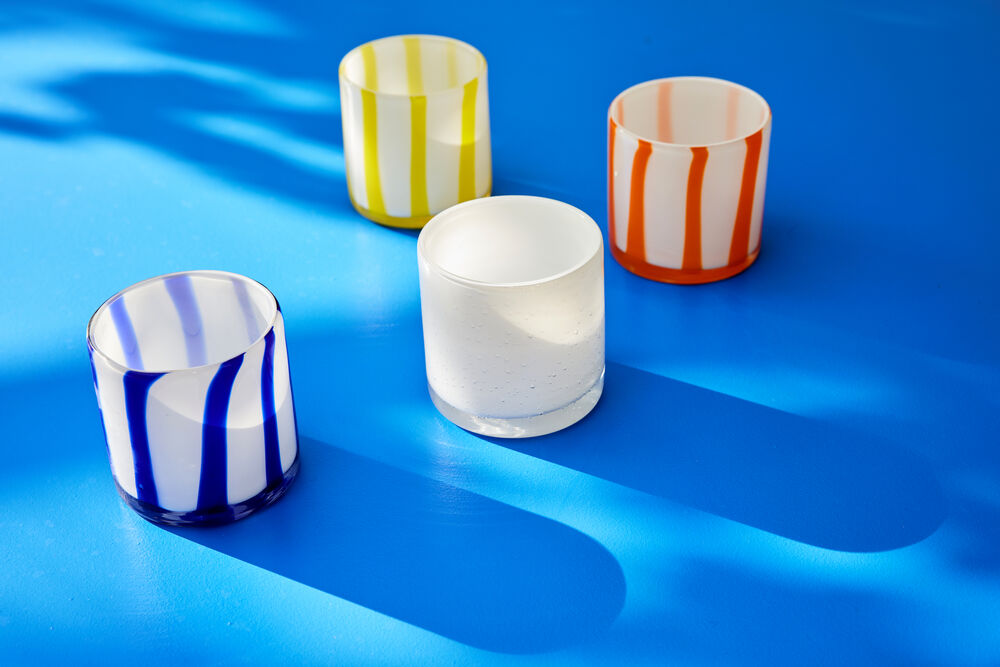 Håndlagde lykter i organiske former med fantastiske kurver av farget glass. Hver lykt er unik. Bruk dem på ulike måter med for eksempel lys i, blomster eller hvorfor ikke fylle dem med fredagspopcorn? Farger og striper varierer fra produkt til produkt, noe vi selvfølgelig elsker! Calore Curve tilhører Calore-familien, men er også i slekt med ByOn’s barrel Curve.