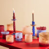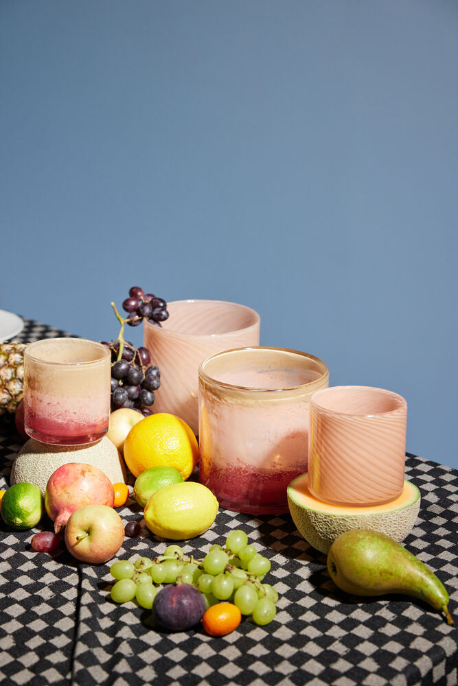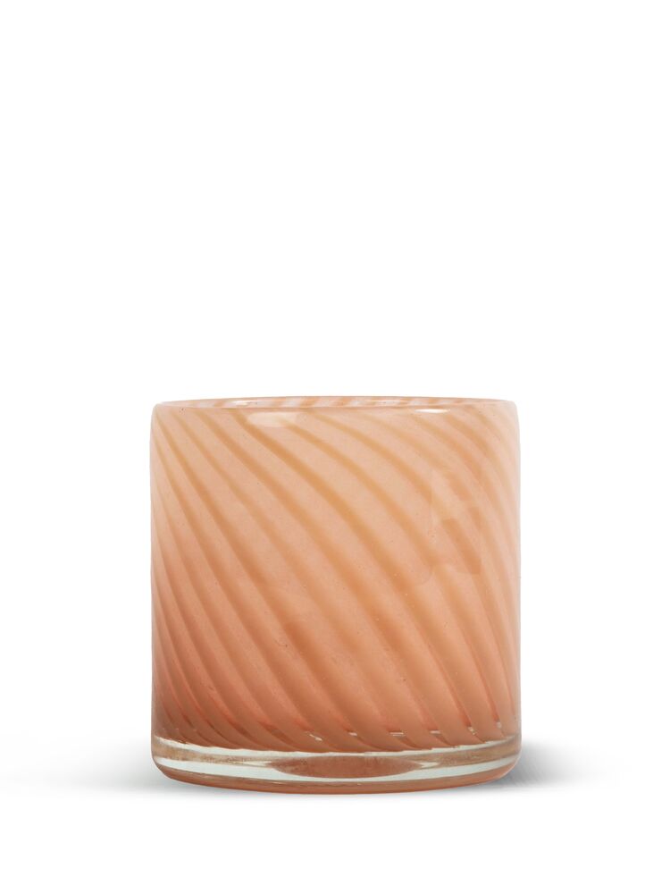 Calore kan brukes som vase, lysestake eller som skål. Miks og match med farger og mønstre. Det går med alt, overalt! Fargen er tåkete rosa med tynne skrå striper. Pakket i en fin Byon-boks.