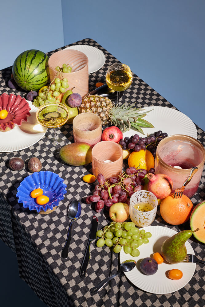 Calore kan brukes som vase, lysestake eller som skål. Miks og match med farger og mønstre. Det går med alt, overalt! Fargen er tåkete rosa med tynne skrå striper. Pakket i en fin Byon-boks.