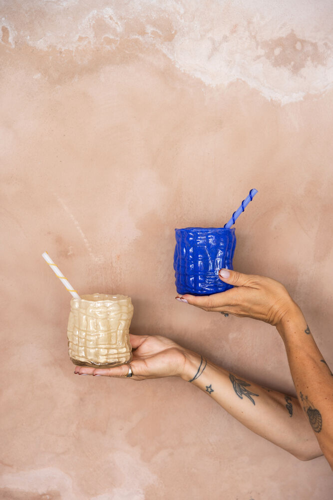 Mønsteret og teksturen i Laranne er både røft og mykt på samme tid, noe som gir den en unik og behagelig følelse. De myke fargetonene skaper et harmonisk inntrykk, og den passer perfekt sammen med Lara takket være deres felles kantdesign. Som en ekstra bonus fungerer Laranne også utmerket som glass til å kjøle ned drikke i, siden den er matvaretrygg. En multifunksjonell skjønnhet! Materialet er munnblåst glass, noe som gjør hvert glass helt unikt. Forskjeller i farge og tekstur kan forekomme. Design Byon Studio. Leveres i Byon-eske.