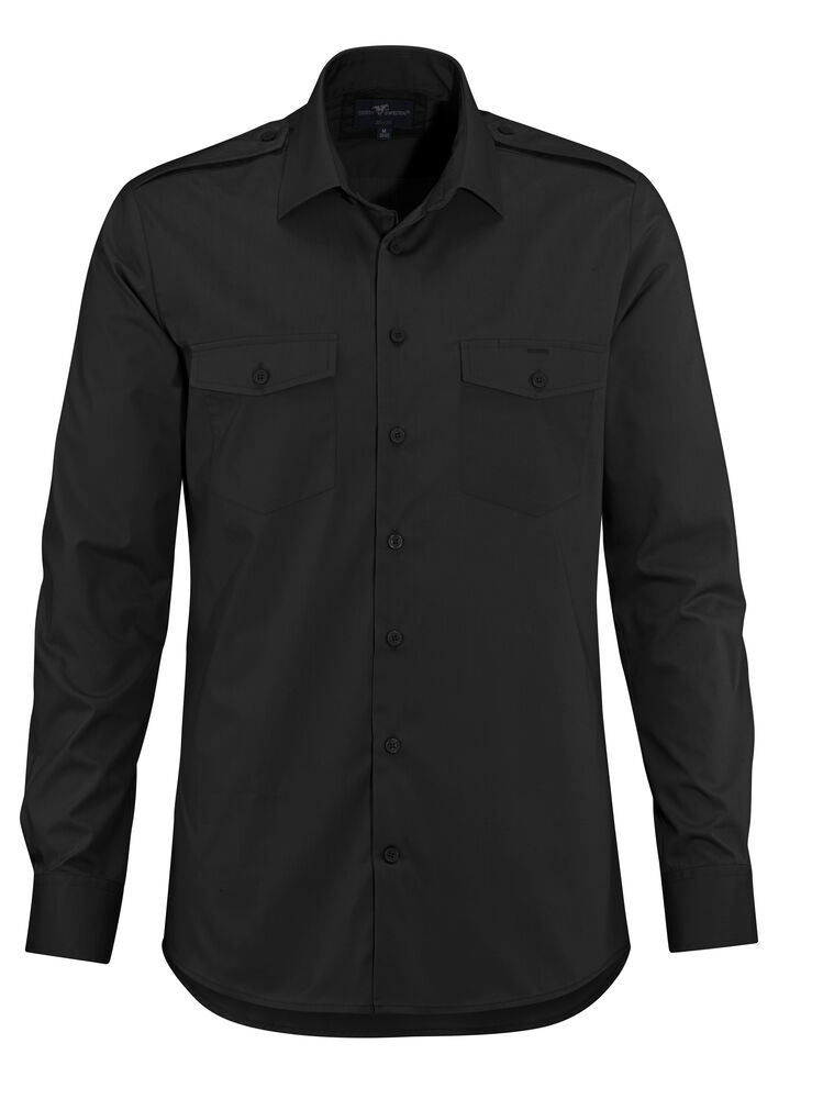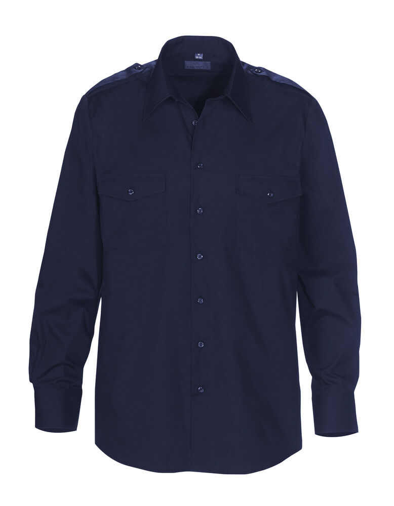 Pilotskjorte med skuldreklaffer og doble brystlommer med klaff. Langermet. Slim fit.