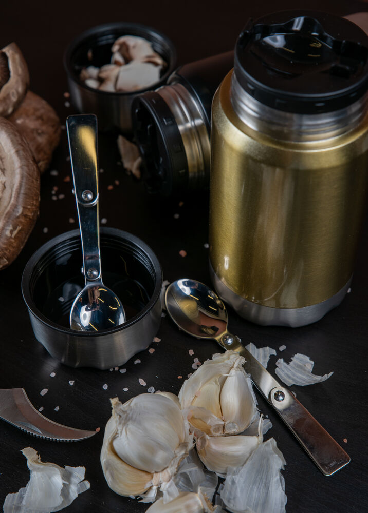 Liten og smidig mattermos med det lille ekstra. Stilig design i rustfritt stål med en liten sammenleggbar skje inkludert i lokket. Termosen har en stor åpning som gjør den enkel å rengjøre, og til å putte inn det du måtte ønske til pikniken!