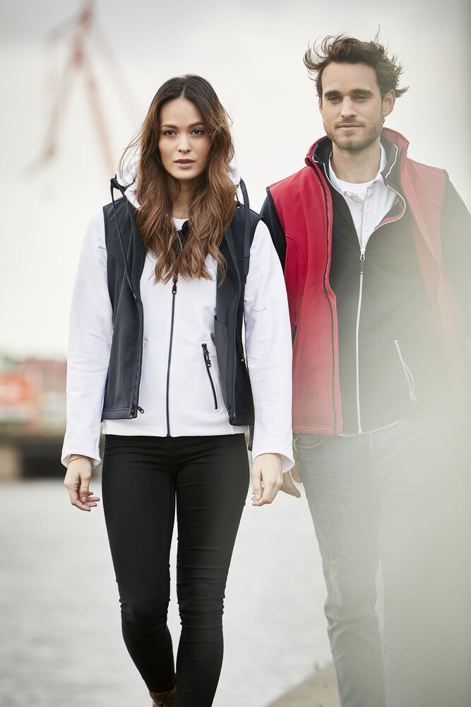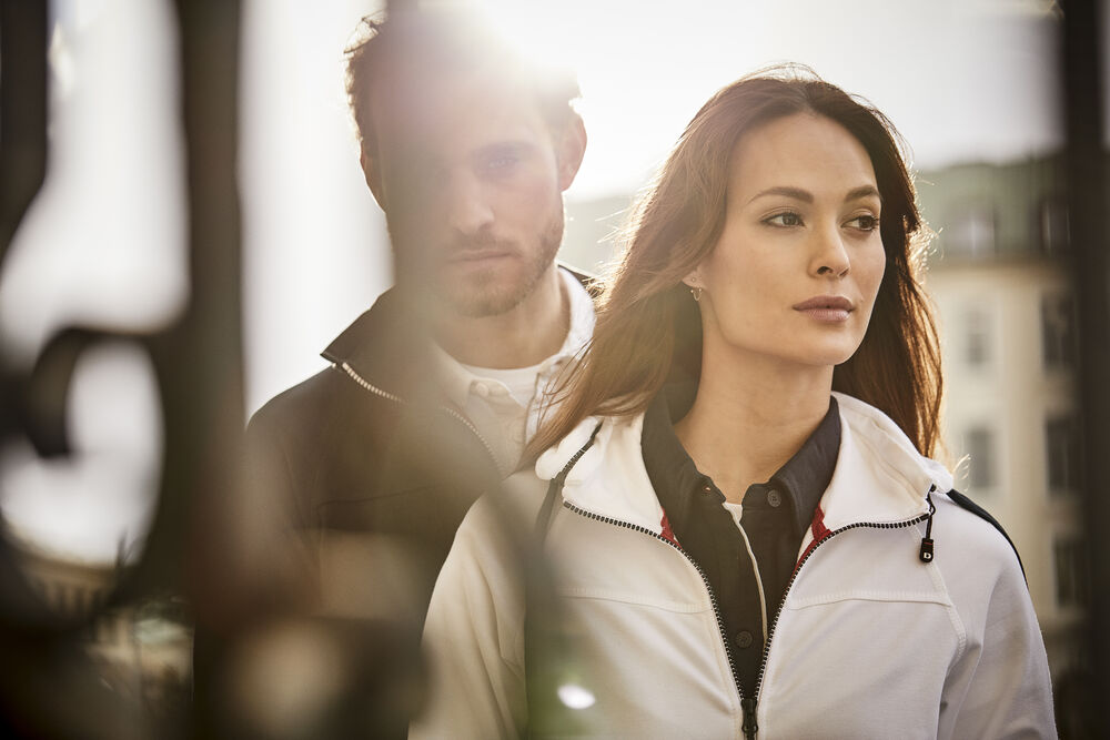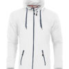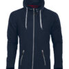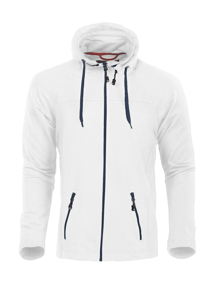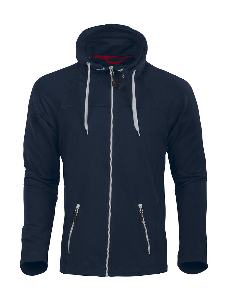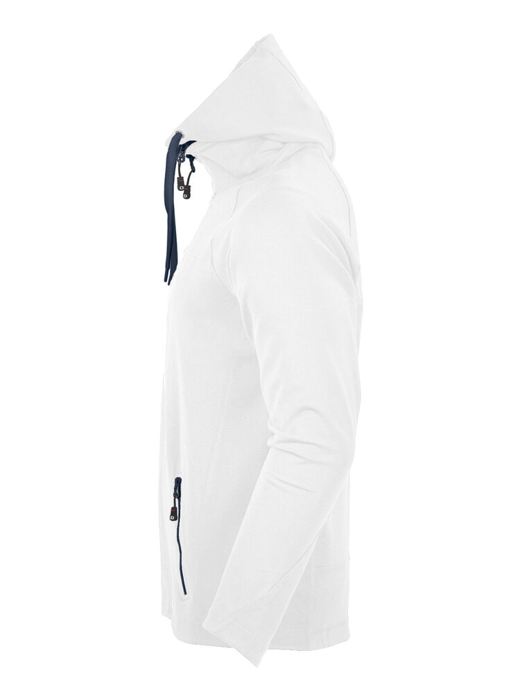 Myk og smidig hettejakke i maritim stil, laget i blandingsmateriale for god komfort. Unik løsning med avtakbar hette der glidelåsen både fyller en praktisk og en dekorativ funksjon. Kraftige glidelåser i avvikende farge. To sidelommer samt dekorsømmer