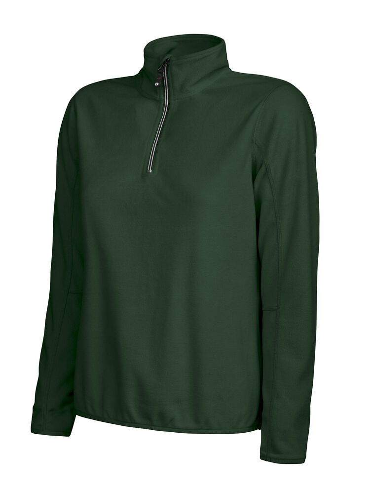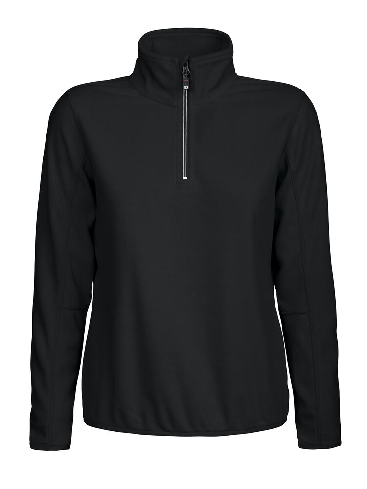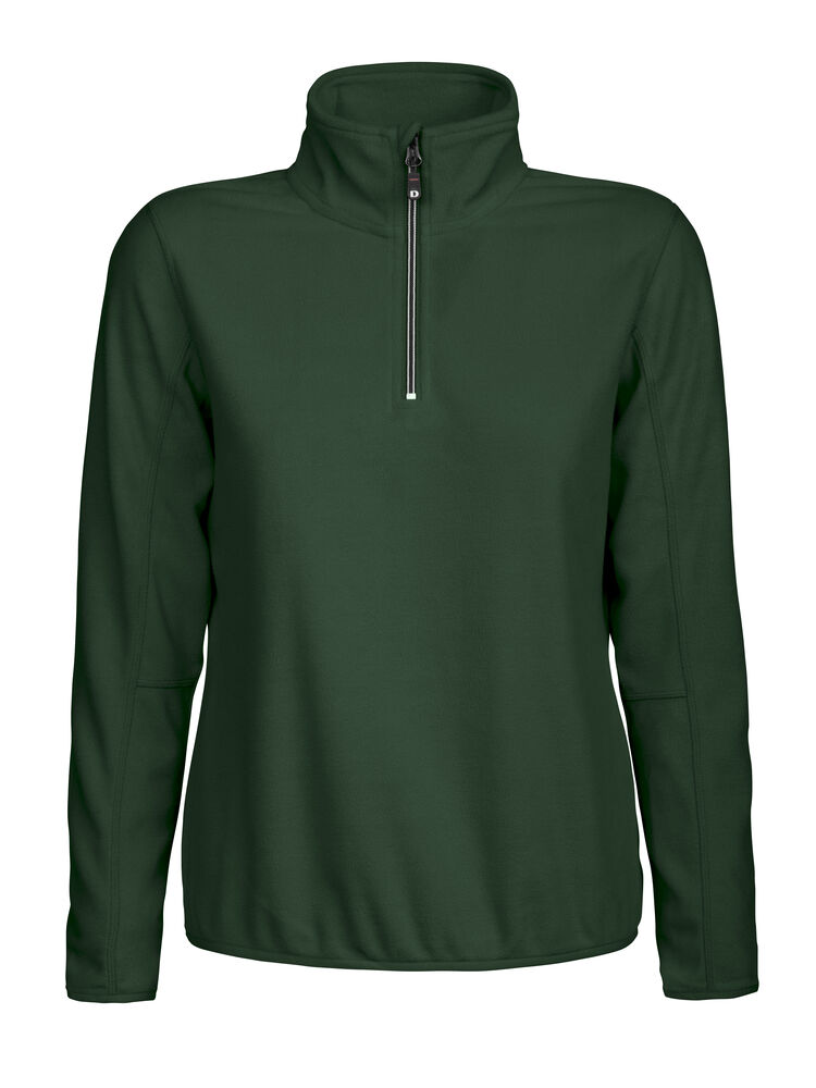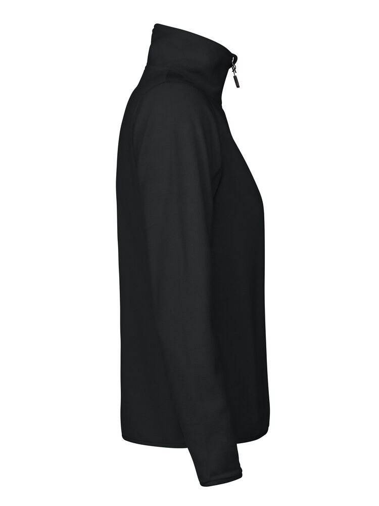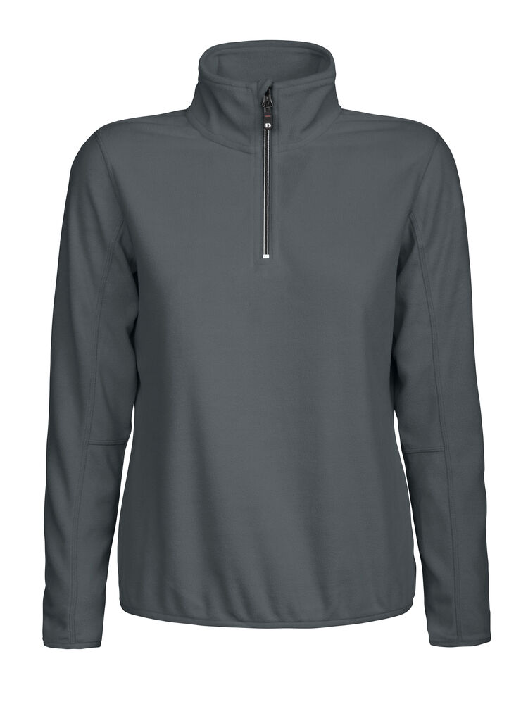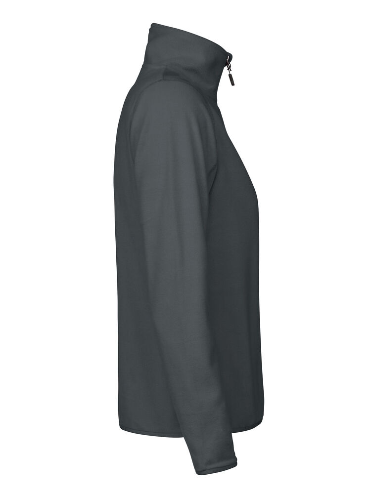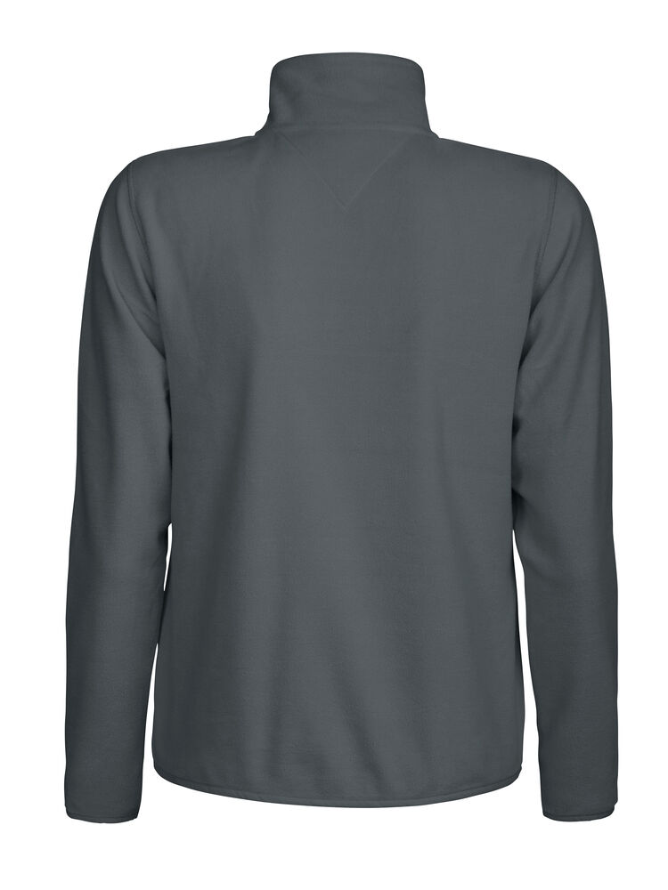 Behagelig microfleece-trøye. Perfekt som lag-2. Kort glidelås med tofarget YKK-glidelås. Dekorativ strikk i flatlock og rib i nederkant og ermene. Alt ton-i-ton.