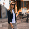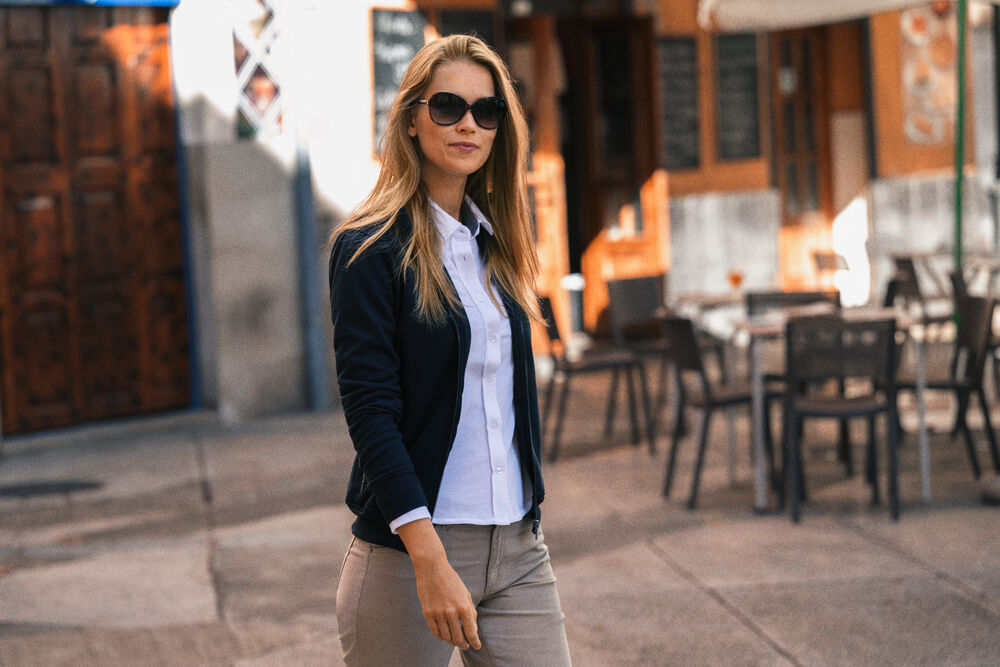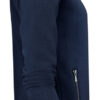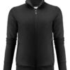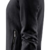 Genser med hel glidelås i front og halvmåne i nakken. Matt svart glidelås med nano-membran i front og på sidelommene. Børstet innside. Ribb i nederkant og i ermeavslutningene.