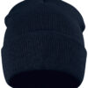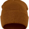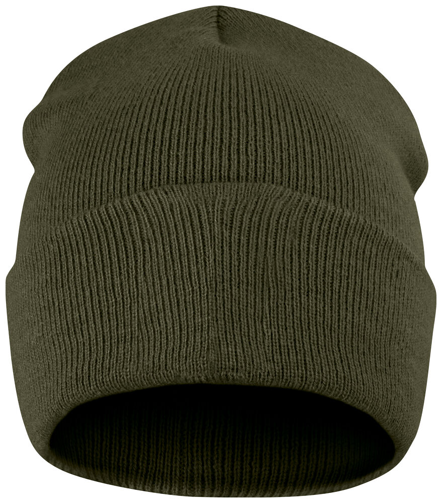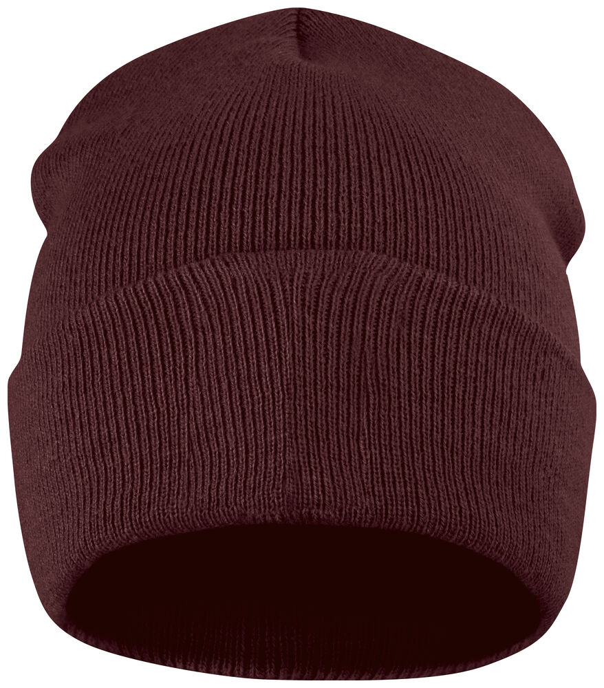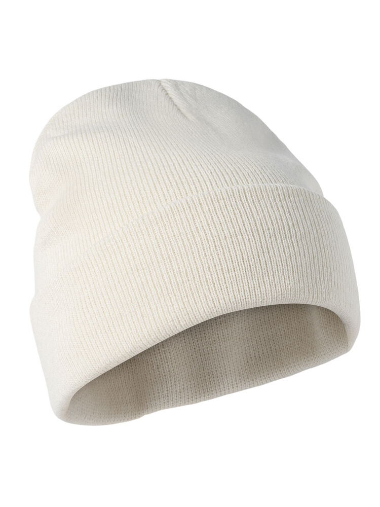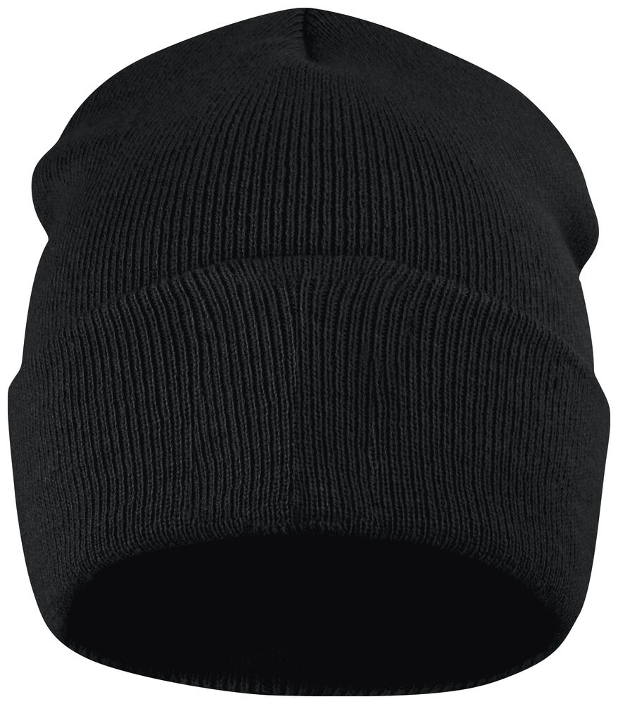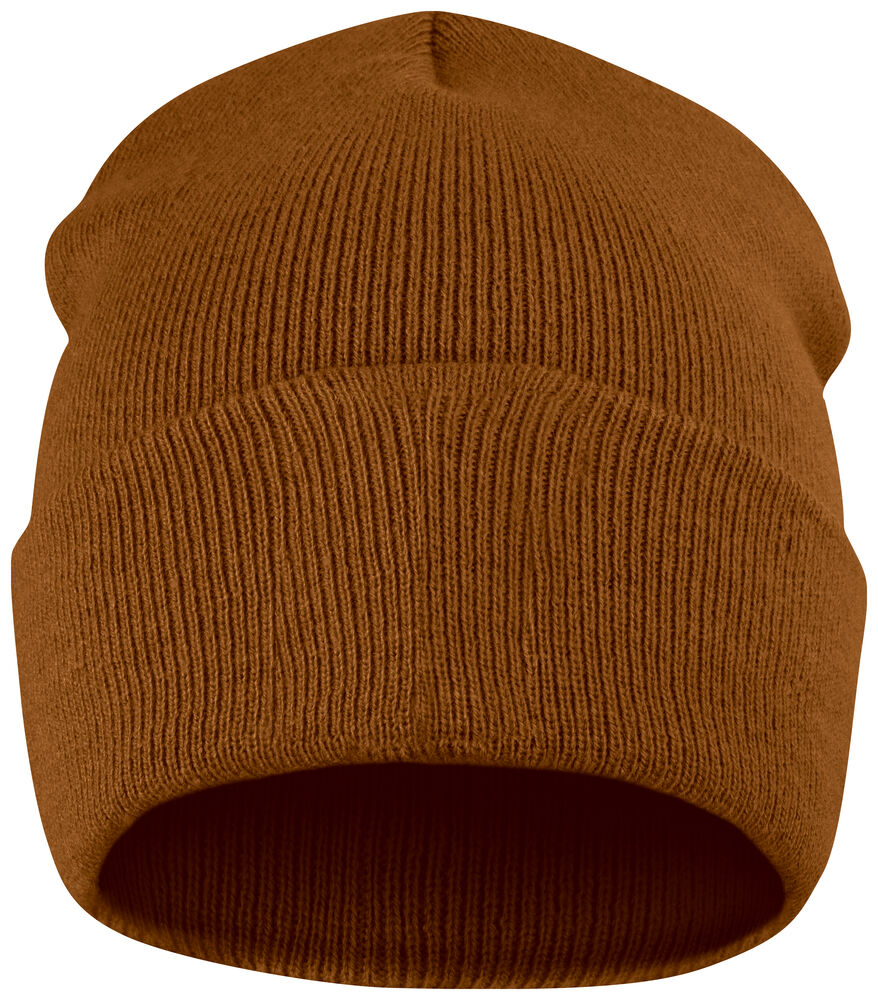 Kraftig, dobbeltstrikket lue med oppbrett og fire sømmer i toppen.