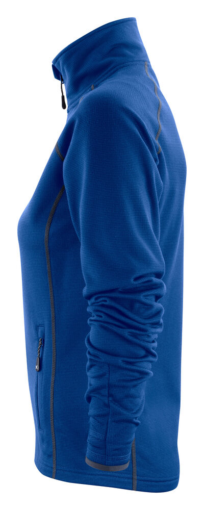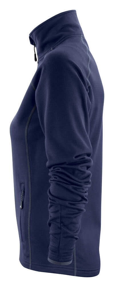 Glatt fleecejakke. Materialet er i "vaffelstrikk" for god isolasjon og fukttransport. Mesh-fôret lomme som også bidrar til ekstra ventilasjon. Vindbeskyttelse bak hovedglidelåsen. Tommelåpning i ermavslutning.