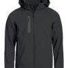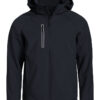 Softshelljakke med to sidelommer, reflekterende piping rundt brystlomme, to innerlommer. Avtagbar hette. Justerbar ermavslutning og snor i nederkant. TPU membran og fleece. WP3000/MVP3000.