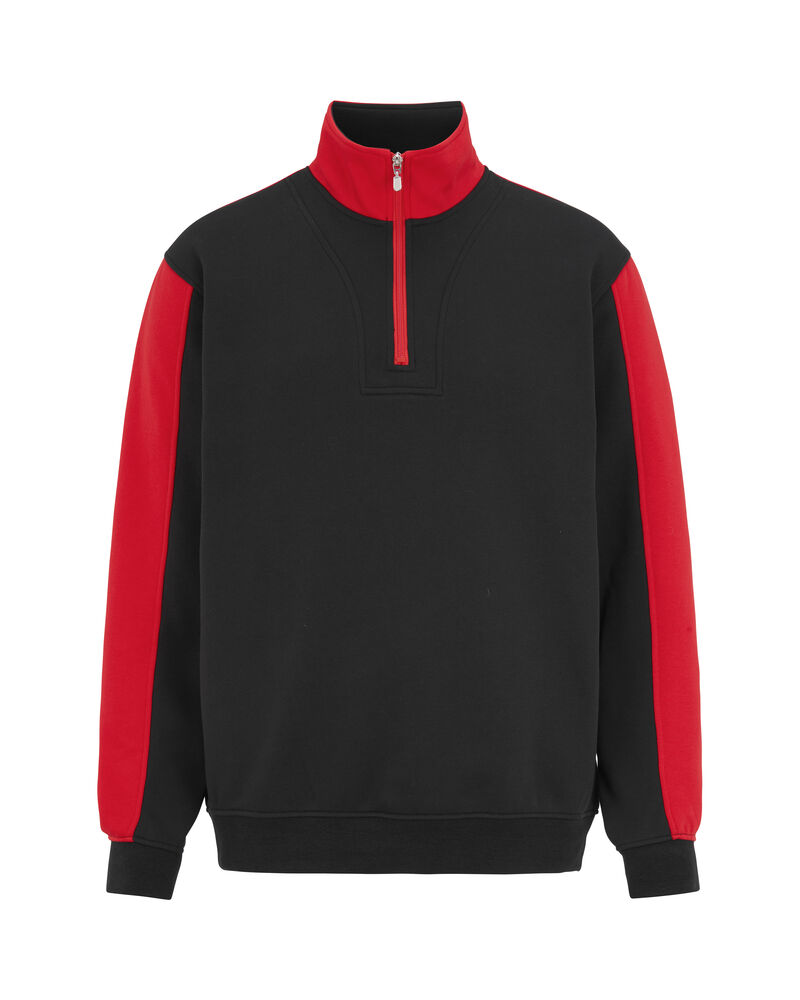 Genser med halfzip. Kontrastfarge på ermer, krage og skulderparti. Kontrastfarget glidelås.