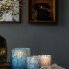 Håndlaget lyslykt som også kan brukes som krukke. Hver lykt er unik med sitt flekkete mønster. Lyktene sprer et vakkert lys og skaper en koselig atmosfære. Tilgjengelig i tre forskjellige farger og ser flott ut i kombinasjon med den større varianten 411246. Hver lyslykt/krukke er unik og kan variere noe i farge og størrelse.
