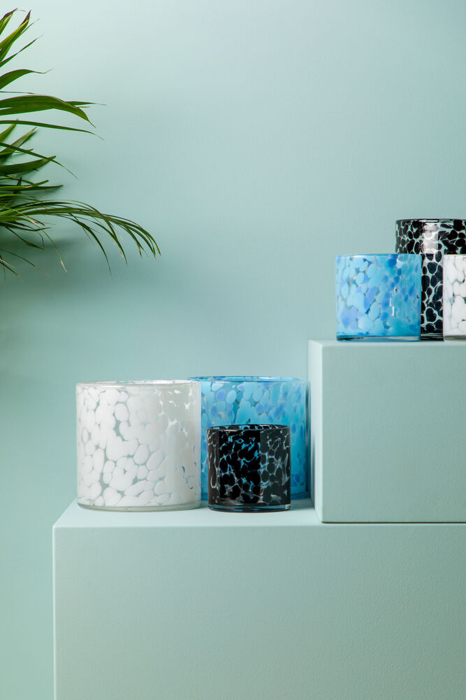 Håndlaget lyslykt som også kan brukes som krukke. Hver lykt er unik med sitt flekkete mønster. Lyktene sprer et vakkert lys og skaper en koselig atmosfære. Tilgjengelig i tre forskjellige farger og ser flott ut i kombinasjon med den mindre varianten 411245. Hver lyslykt/krukke er unik og kan variere noe i farge og størrelse.