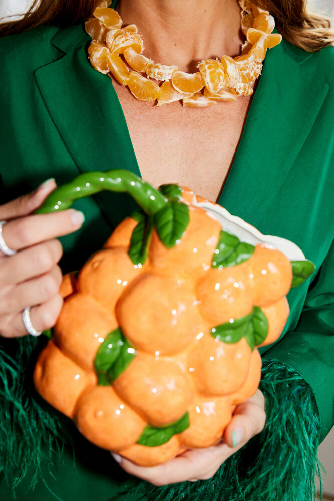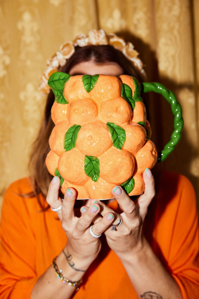 Denne håndlagde kannen er dekket med nydelige mandariner i en herlig oransje nyanse. Håndtaket er vridd for en morsom vri og gir oss akkurat den unike følelsen vi alltid er på jakt etter når vi lager produkter til et hjem. Perfekt til morgenjuicen eller hvorfor ikke fylle den med en herlig sangria? Et fint tilskudd til ByOn’s fruktkompott sammen med de forrige sitron- og melonkoppene. Mandarin er også tilgjengelig som kopp.