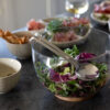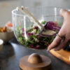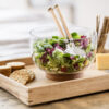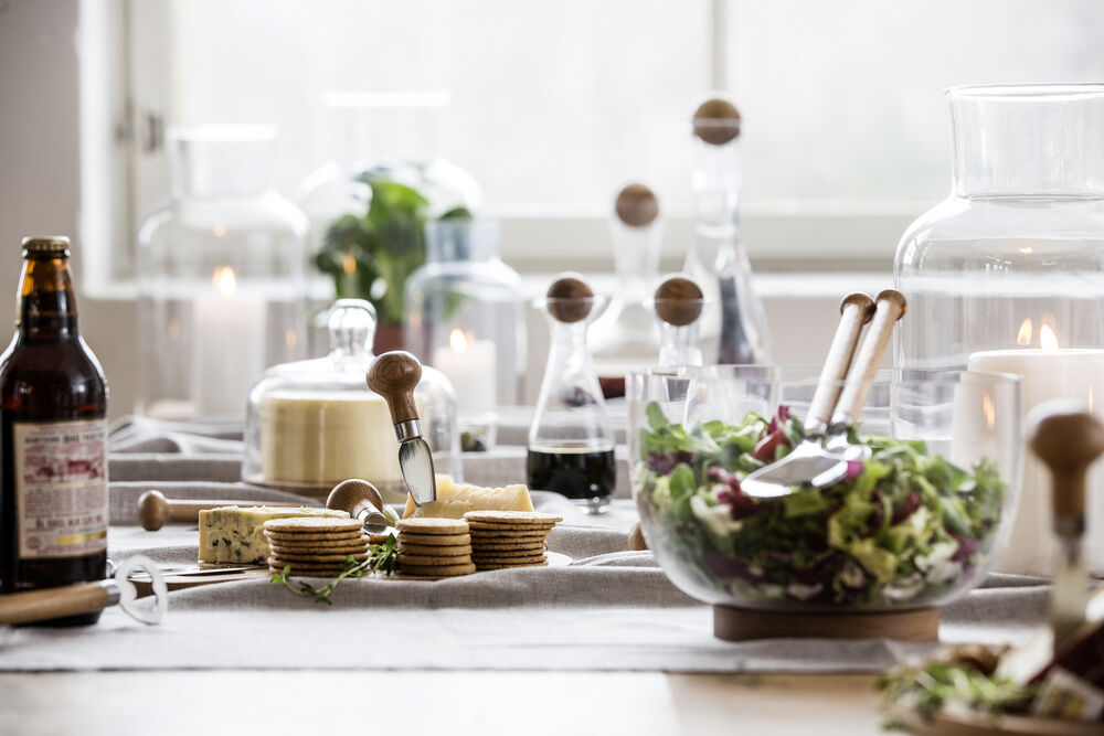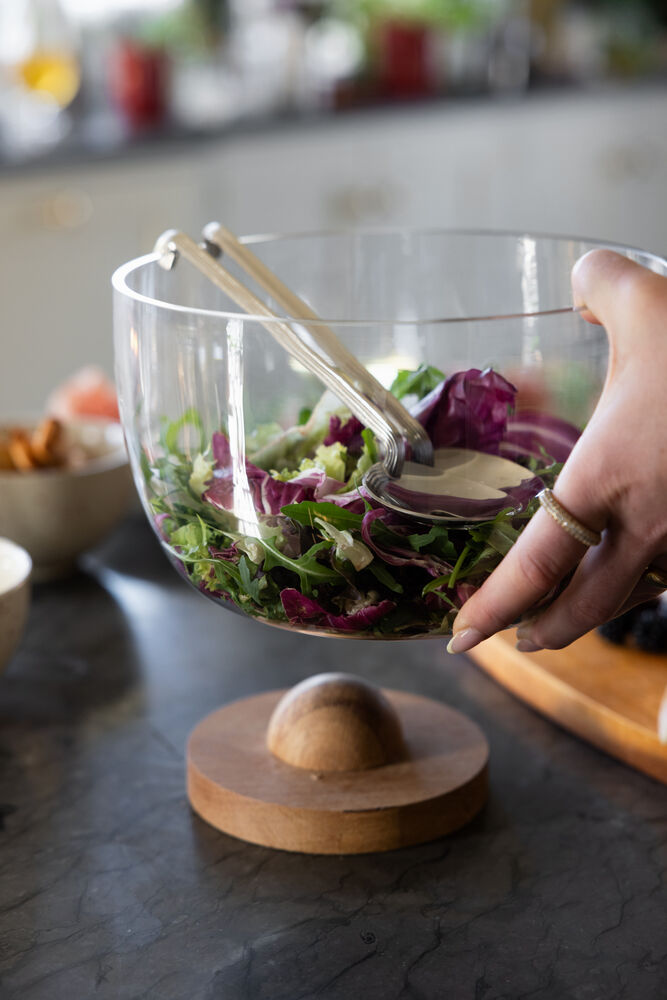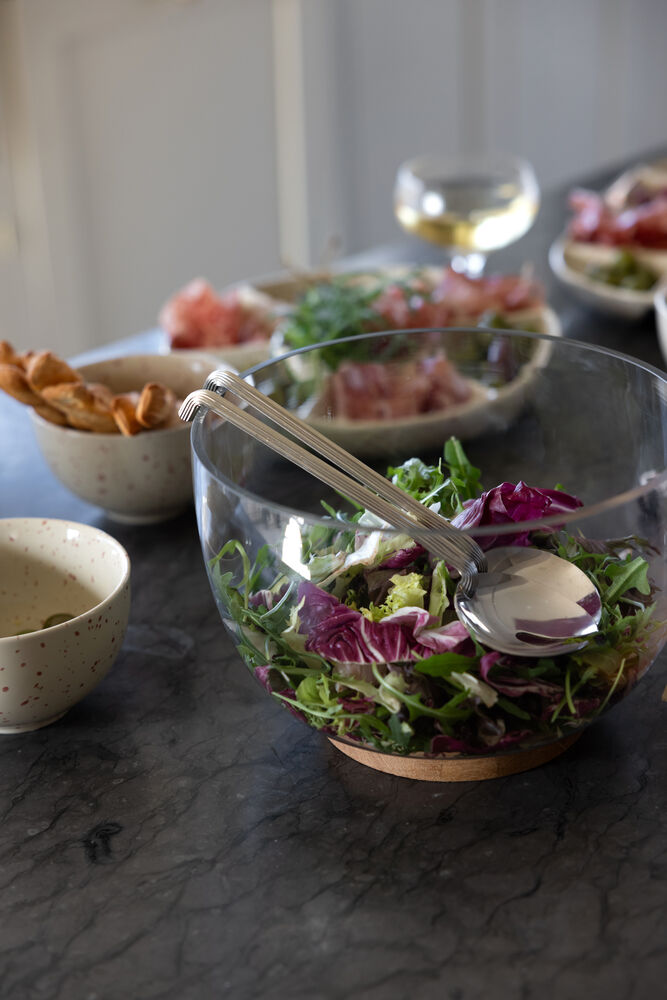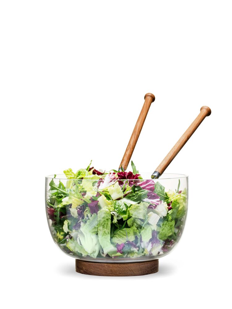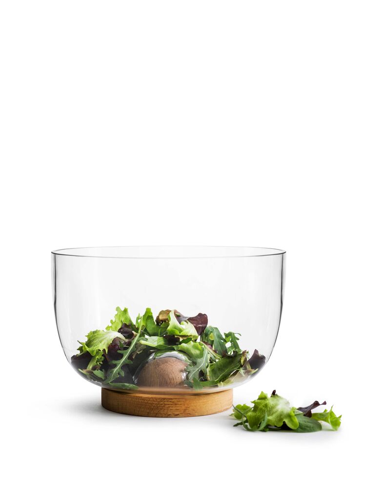 Serveringsskål i et lekkert design med en bunnplate i massiv eik. Bunnplaten er avtagbar og beskytter underlaget. Perfekt for salat eller frukt. Glem ikke å olje bunnplaten med jevne mellomrom.