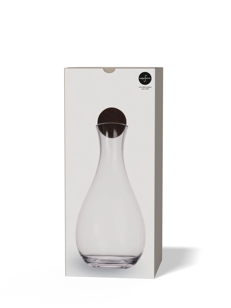 Nature vinkaraffel med korklokk kombinerer holdbarhet, bølgende former og mystikk. Den mørkebrune kork-kulen gir karakter, og leder tankene til havets flaskeposter som har vandret langs havbunnen med små vakre budskap. I dag signaliserer den brune fargen luksus og korkens holdbarhet. Nature vinkaraffel harmonerer nydelig med Saga-serien. Karaffelen er tilgjengelig i to størrelser og former.