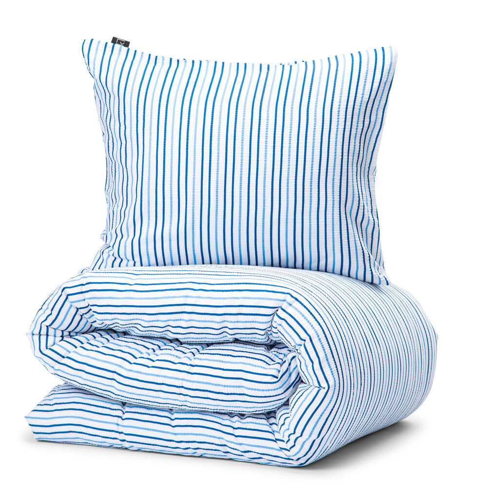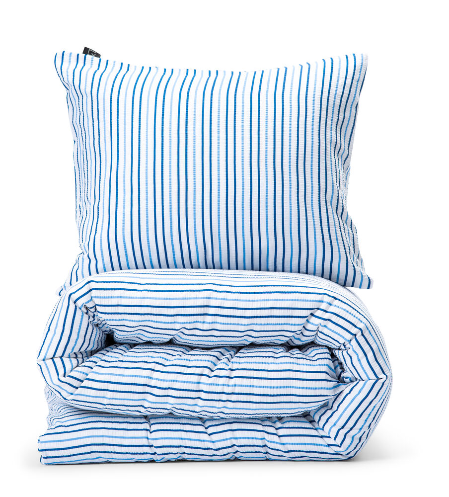Sengesettet med rustikk, stripete mønster i en fin strømbølge som gir en luftig og avkjølende følelse mot huden.