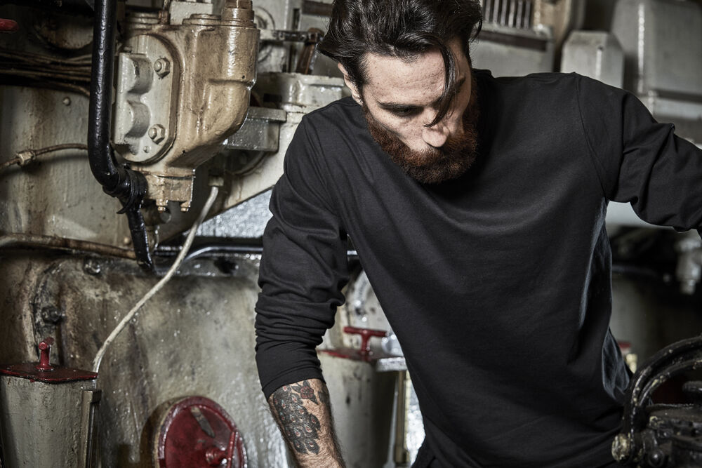 Langermet t-shirt i forkrympet single jersey. Normal passform.
