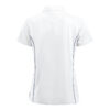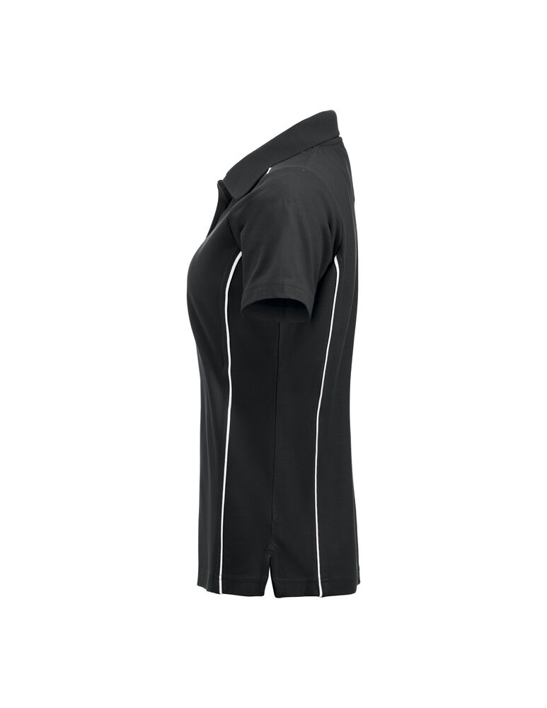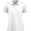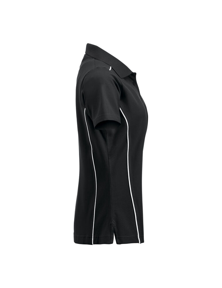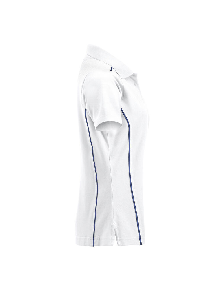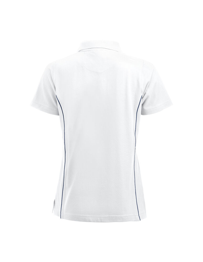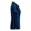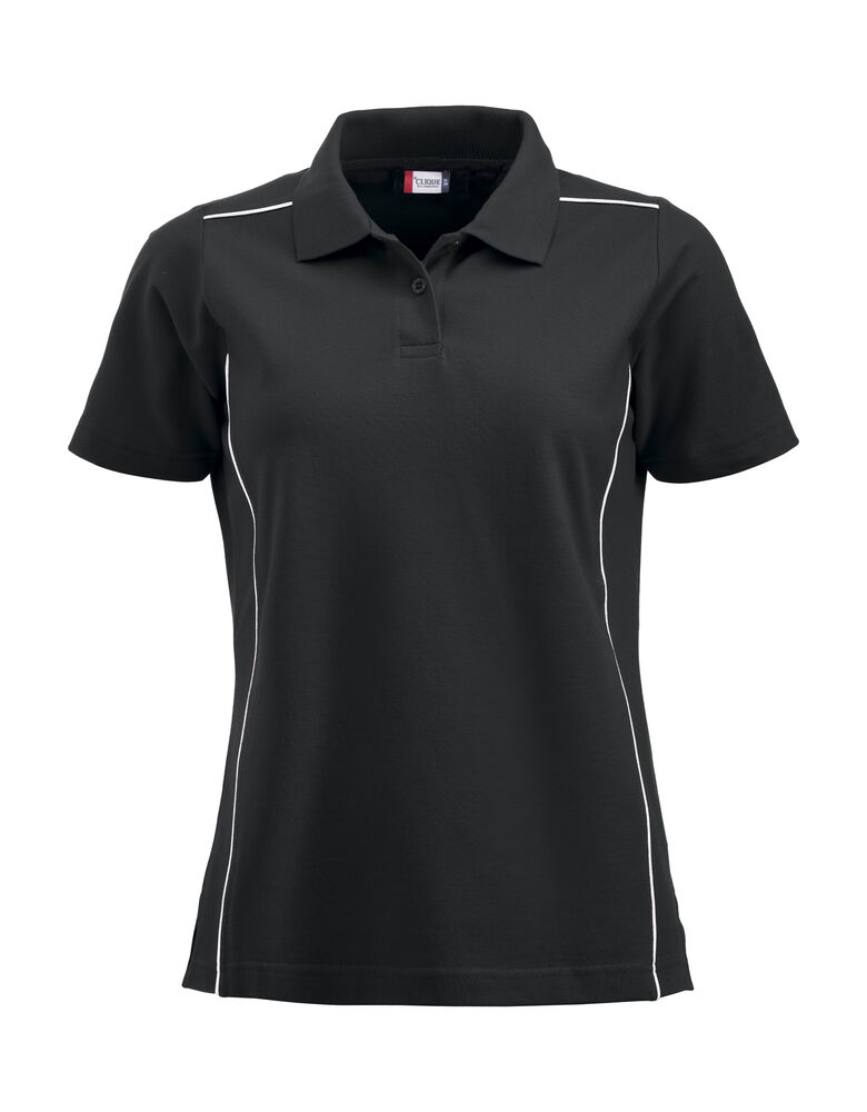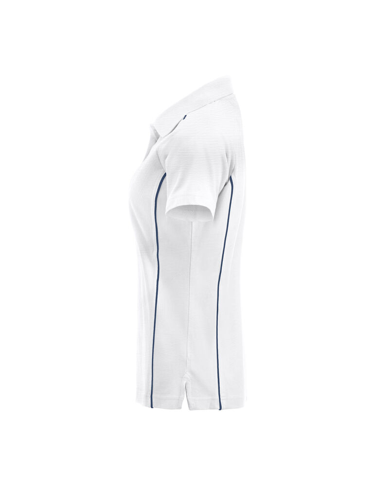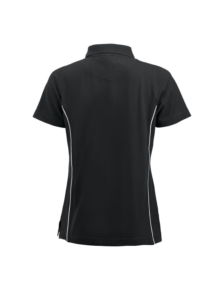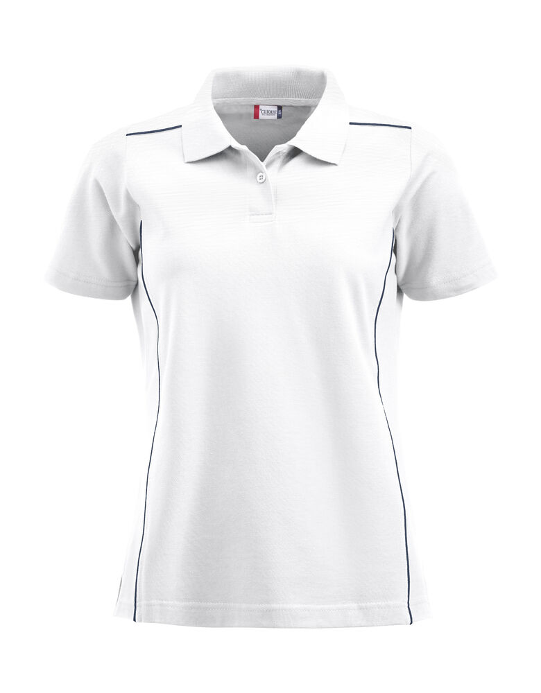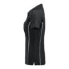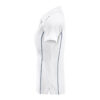 Damepique med dekorative kontraststriper og ton i ton knapper. Harringbone nakkebånd og sidesplitt.