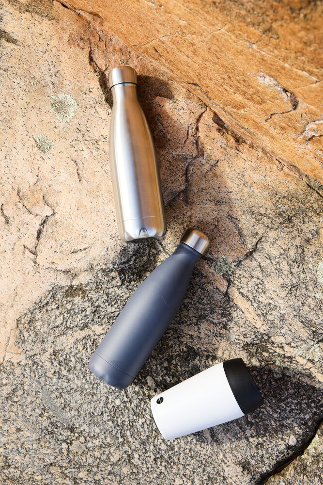 Sagaforms klassiske og populære vannflaske i stål, i en kul asfaltgrå farge. Avansert vakuumkonstruksjon med doble stålvegger og kobberbelegg som gir ekstra god isolasjon uten kondens. Flasken holder drikken iskald i opptil 24 timer eller varm i opptil 12 timer Pakket i en fin Sagaform-boks.