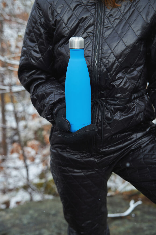 Vår bestselgende stålflaske i lyseblått. Overflaten er gummiert for et godt og behagelig grep. Stålflasken har unike egenskaper. Den holder kulden i opptil 24 timer og varmen i 12 timer. Rommer 50 cl.