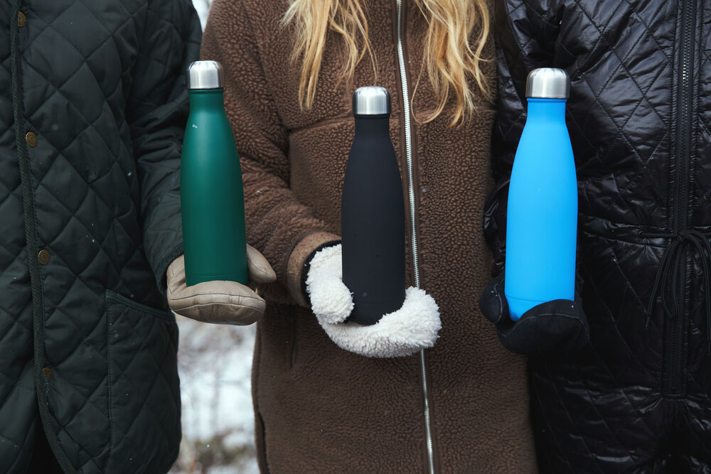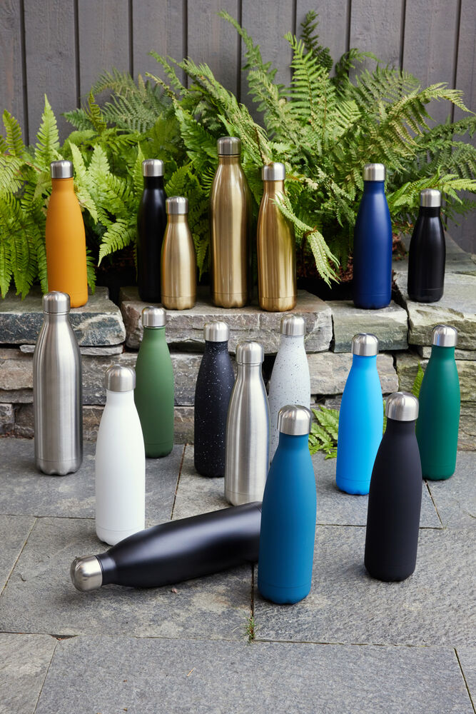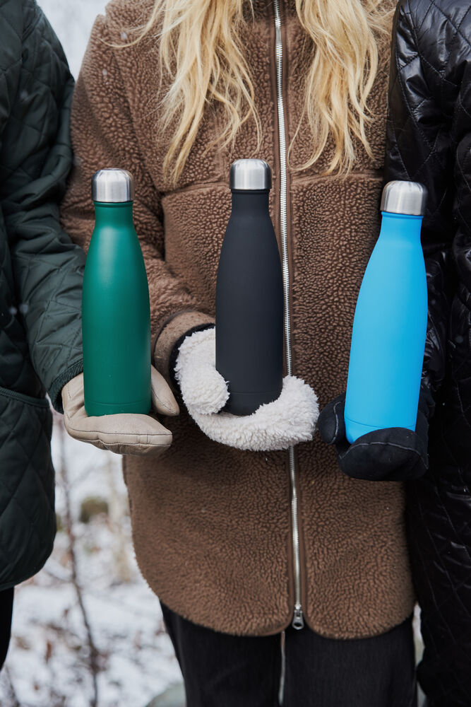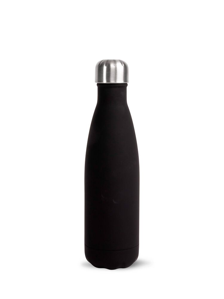 Vår bestselgende stålflaske i svart. Overflaten er gummiert for et godt og behagelig grep. Stålflasken har unike egenskaper. Den holder kulden i opptil 24 timer og varmen i 12 timer. Rommer 50 cl.