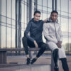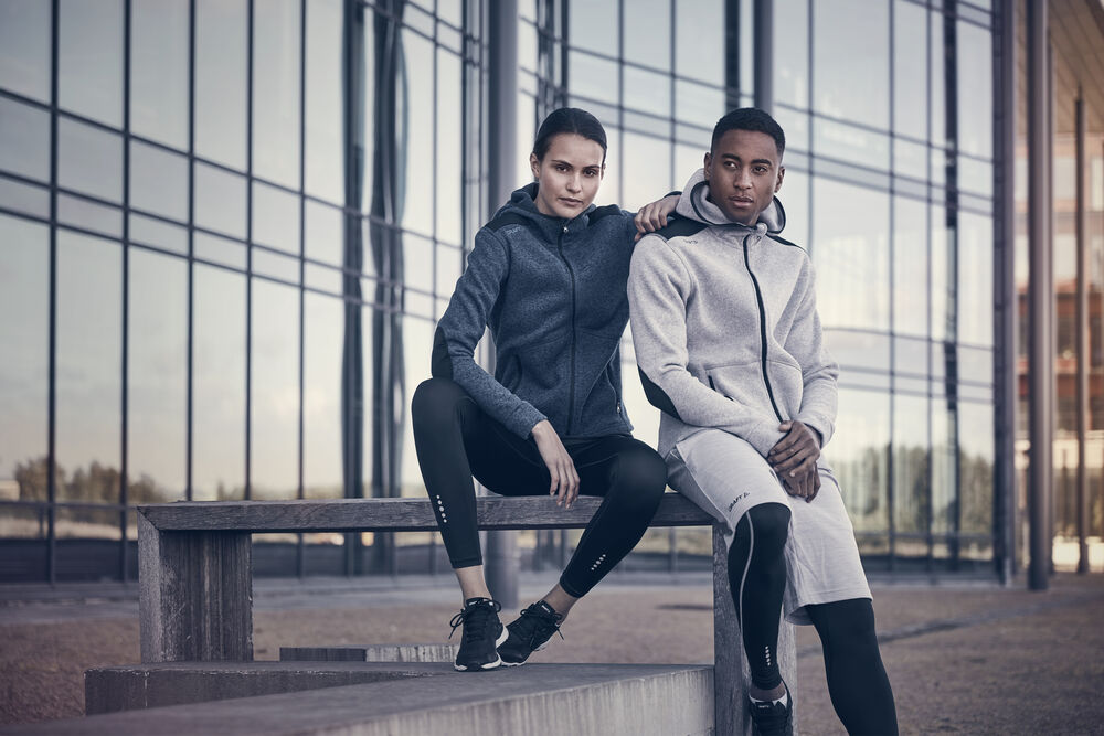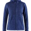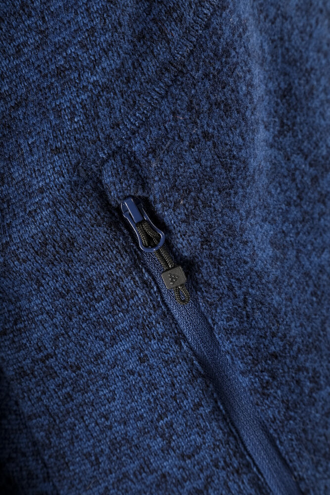 Ribbestrikket fleecejakke med hette, flatlocksømmer og to lommer med glideås.