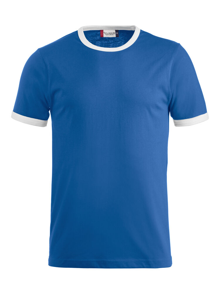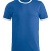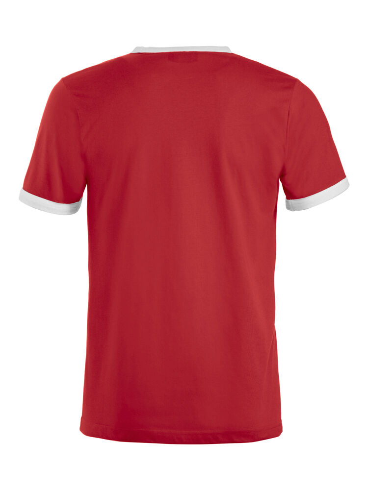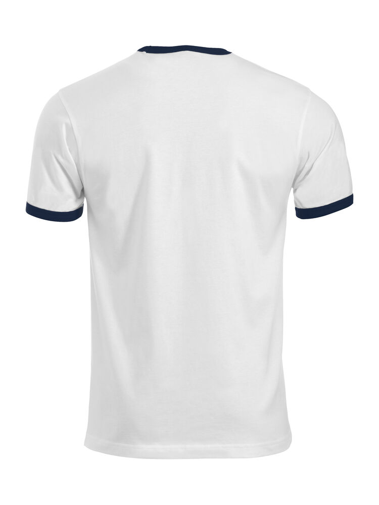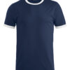 Moderne T-shirt med noe smalere passform, kontrastfarge i hals og ermer. Teipet krage med elastan.