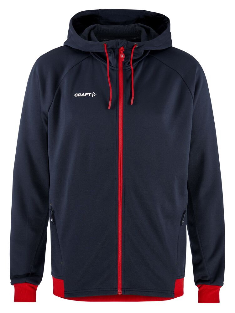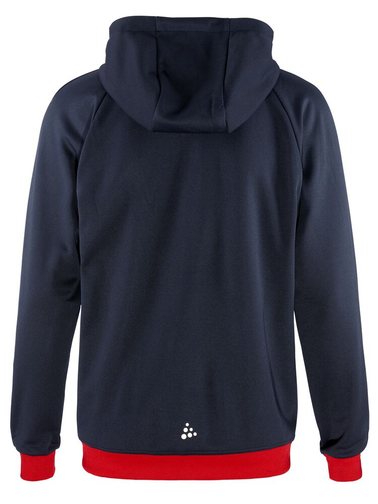 Myk og funksjonell hettejakke med stretch. Produsert av resirkulert polyester. To lommer i front.