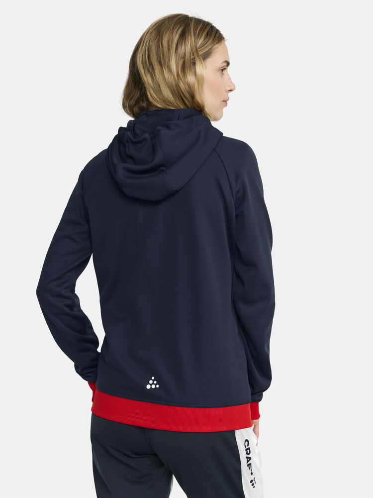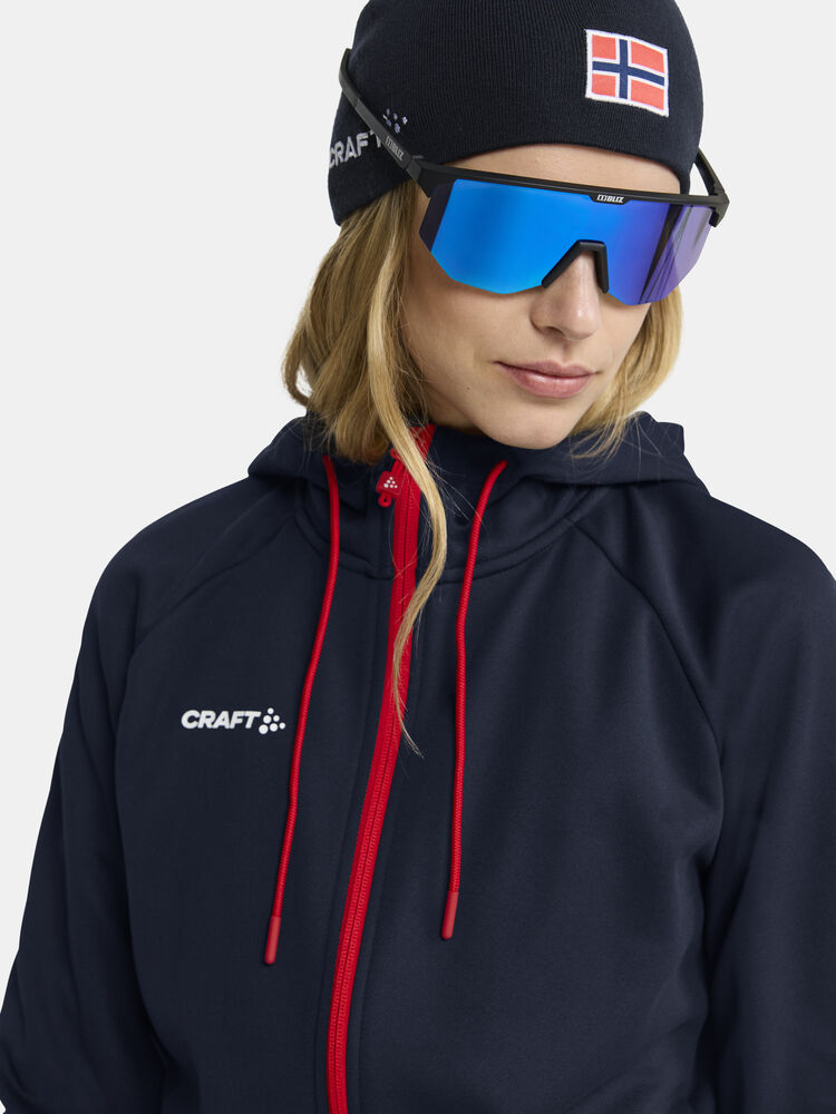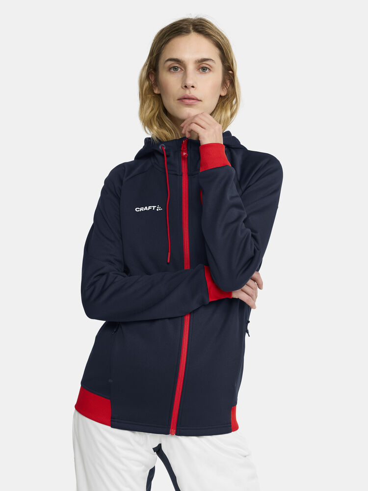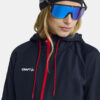 Myk og funksjonell hettejakke med stretch. Produsert av resirkulert polyester. To lommer i front.
