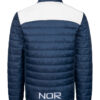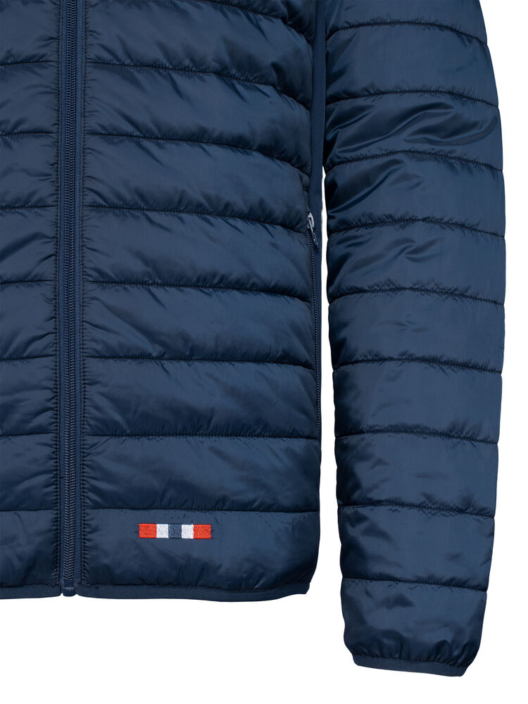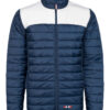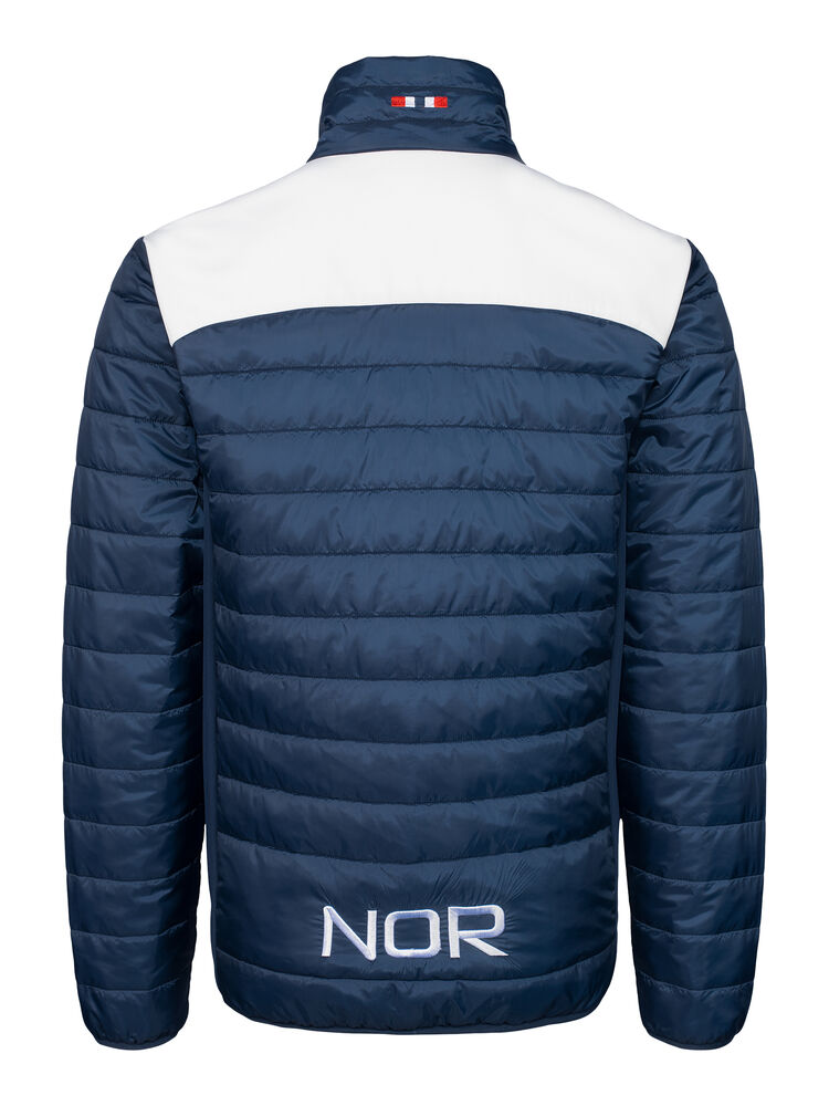 Softshell/lettvektsjakke. Sidepanelene og skulderpartiet er av softshellmateriale, mens front, bakside og ermer er av vattert lettvektsmateriale.