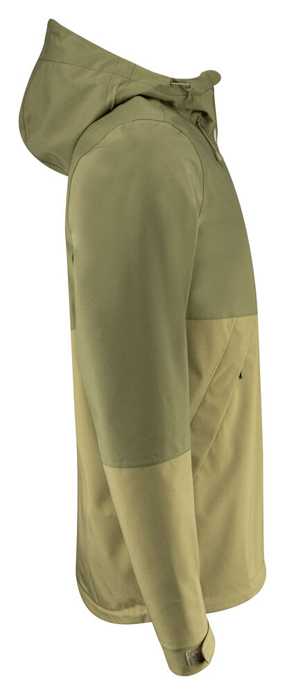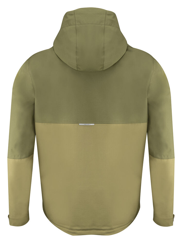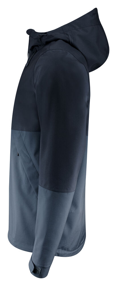 Funksjonell, tofarget skalljakke med teipede sømmer. Vanntett glidelås i front og reverserte nylonglidelåser på sidelommene. Borrelåsjustering i ermeavslutningene. Meshfôr med innerlomme på venstre side. Broderingslomme med glidelås. Reflekterende merke midt på ryggen. Justerbar, elastisk snor i hette og nederkant.