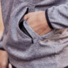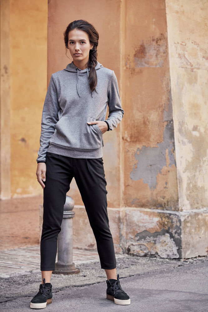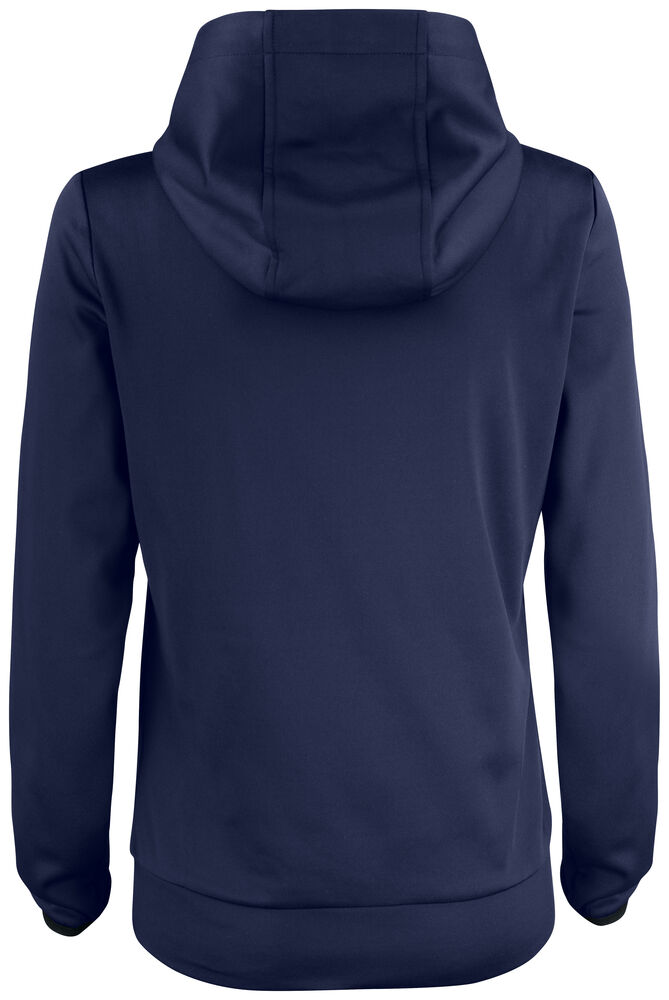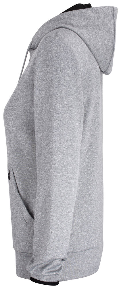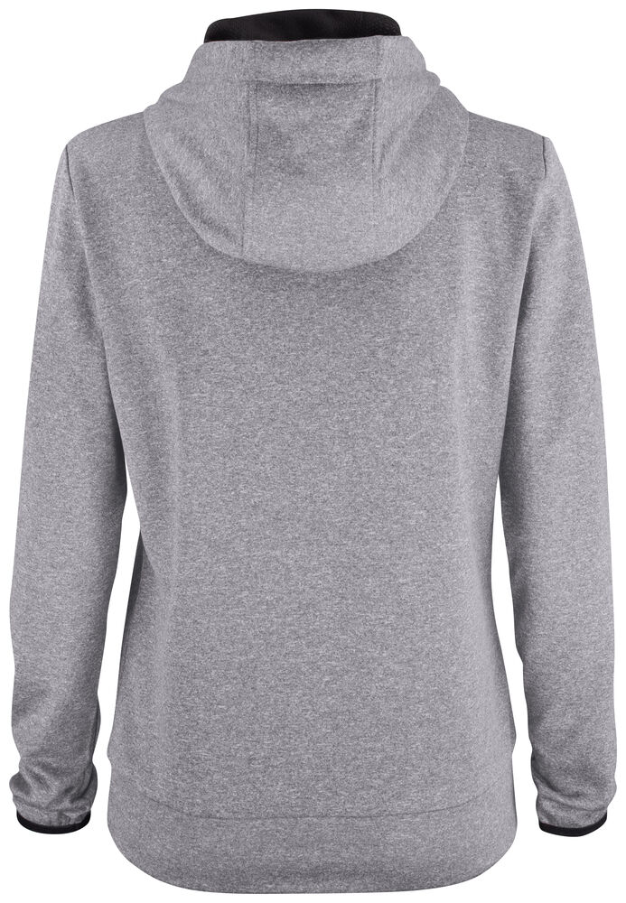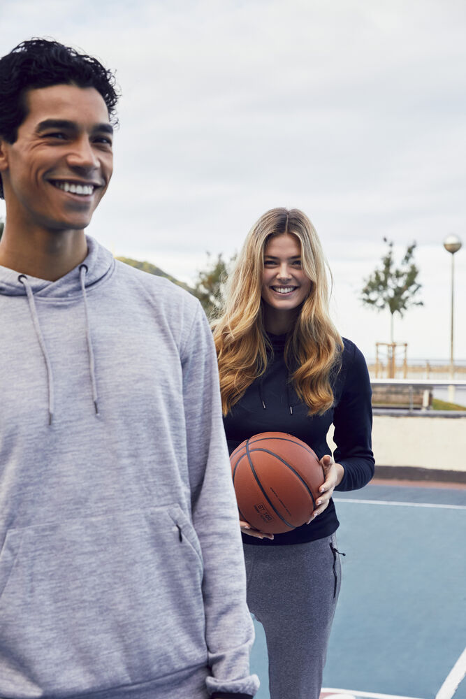 Funksjonell og sporty hettegenser. Leveres med en kengurulomme og en ekstra skjult lomme med glidelås. Hette har meshfôr og snøring. Elastisk strikk i ermekant. Mansjett i stoffet nederst.