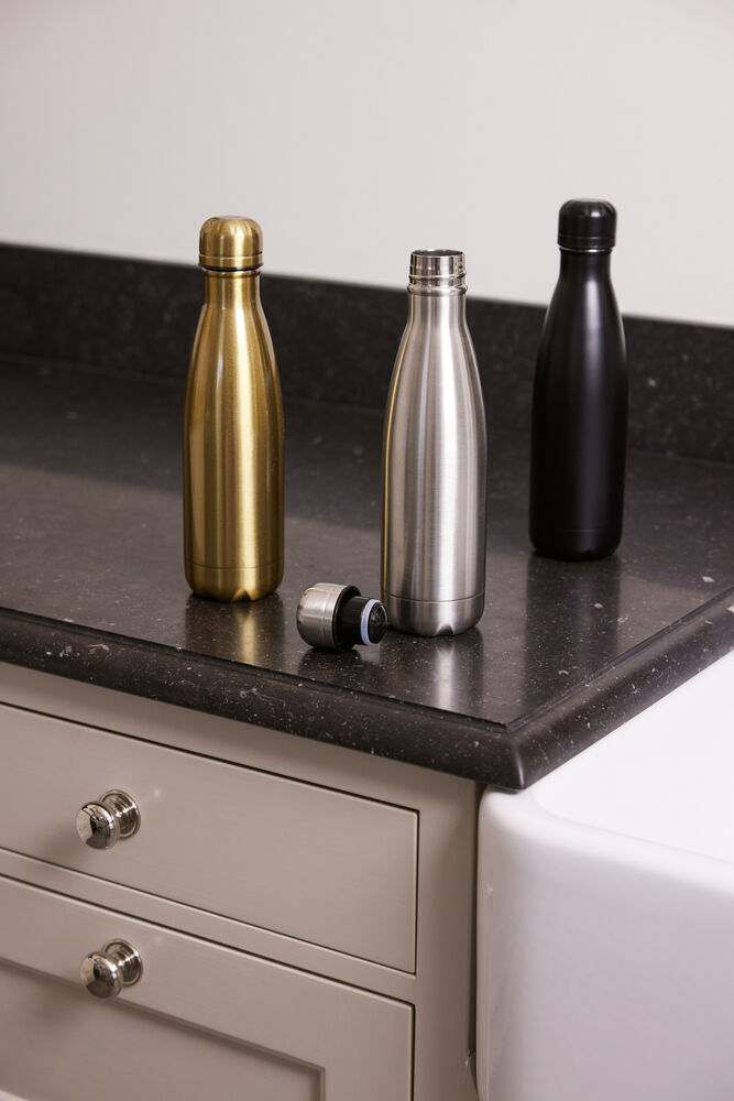 Stålflaske med doble vegger og vakuumkonstruksjon. Holder drikken varm i 8 timer eller kald i 16 timer.