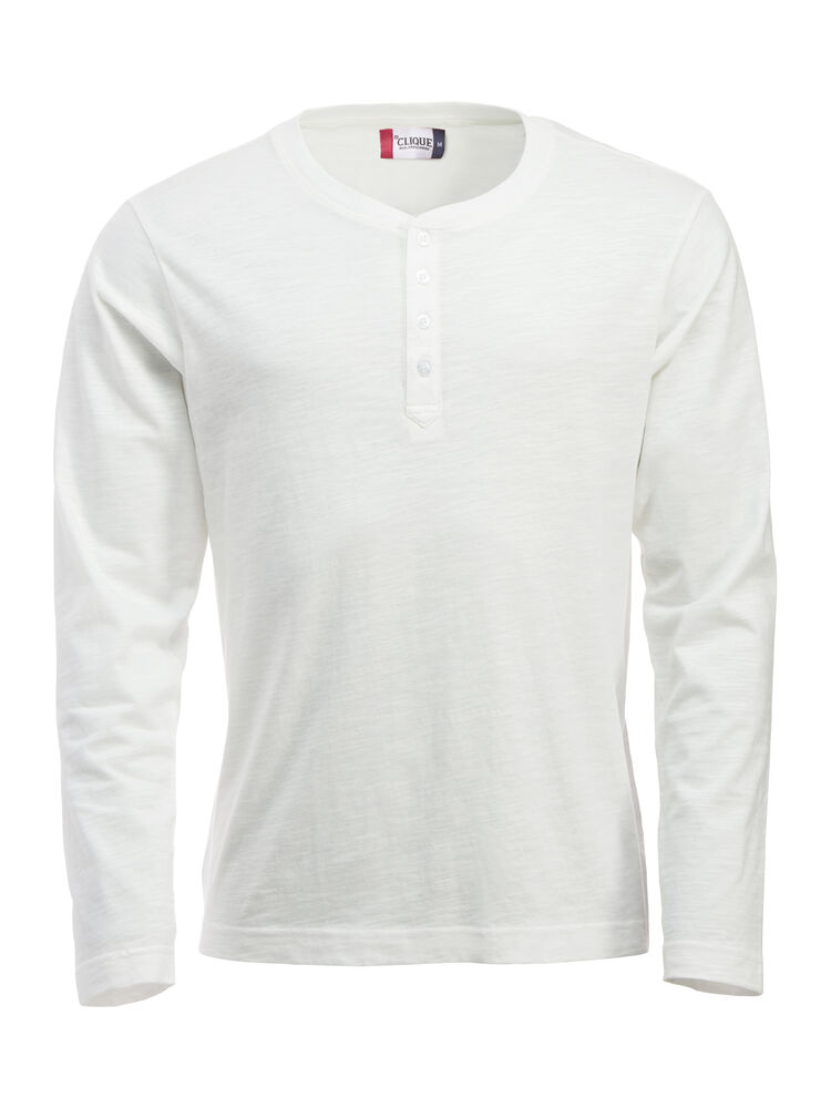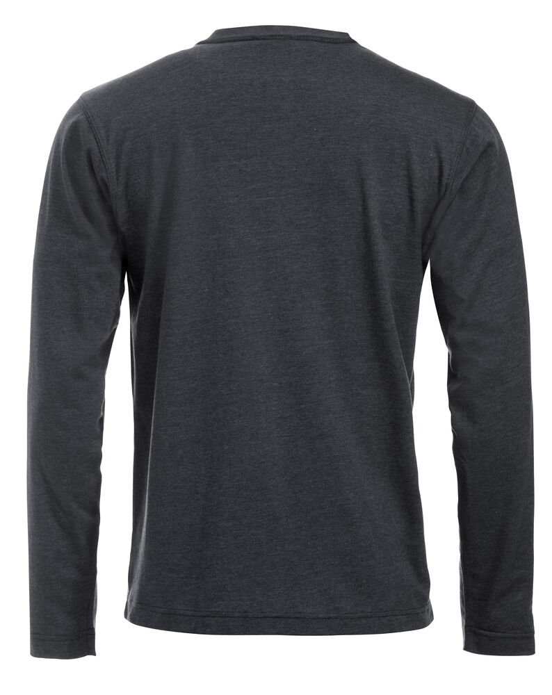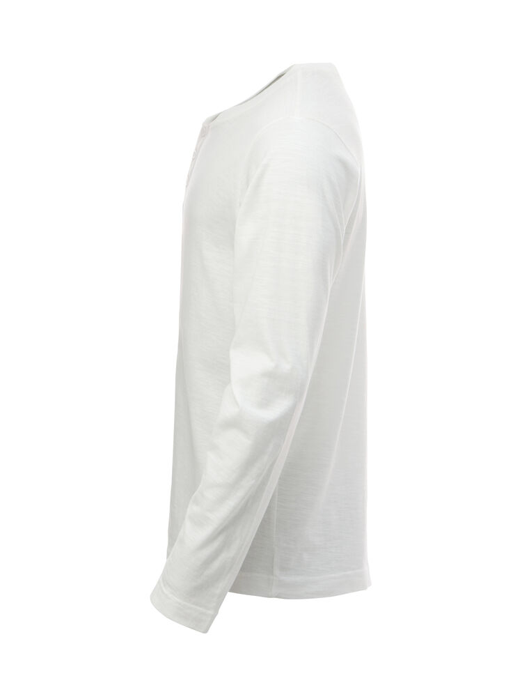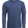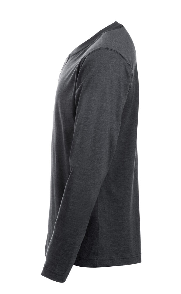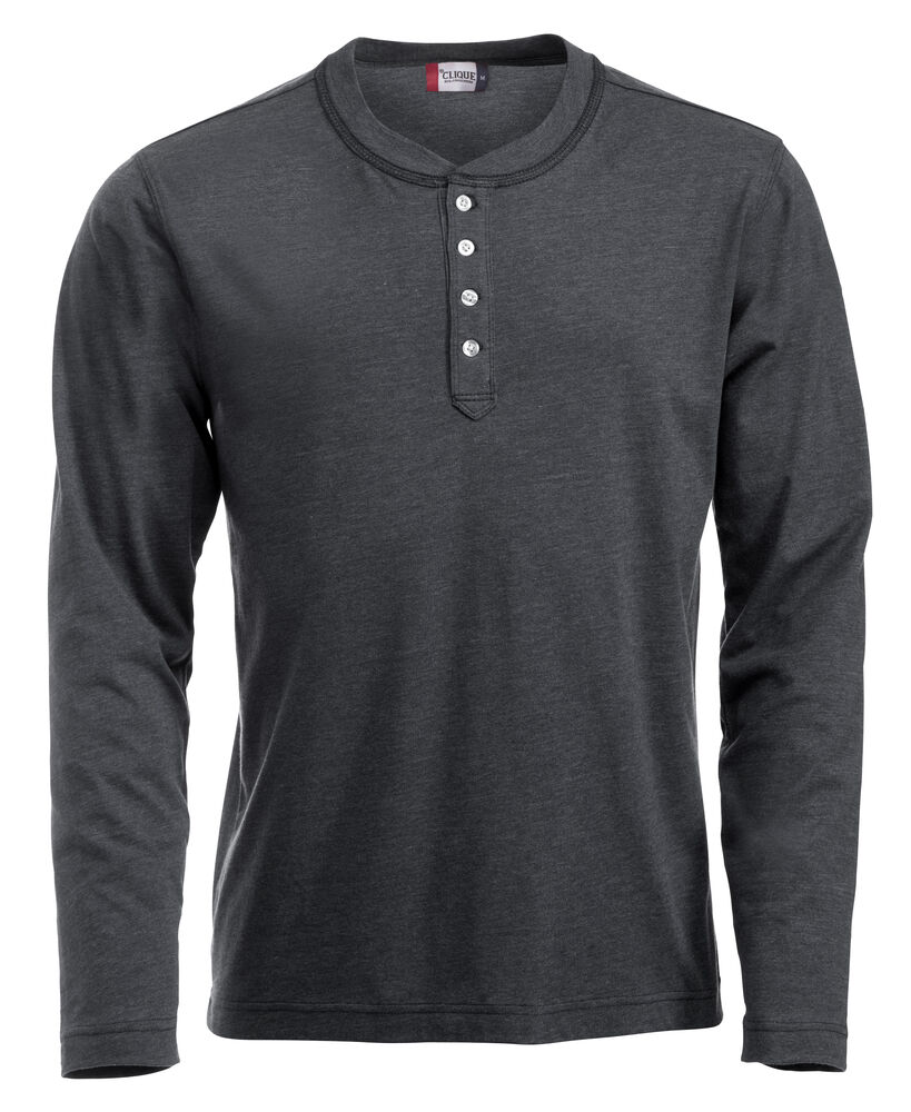 Langermet t-shirt, knappestolpe med 4 knapper på herremodellen og 5 på dame.