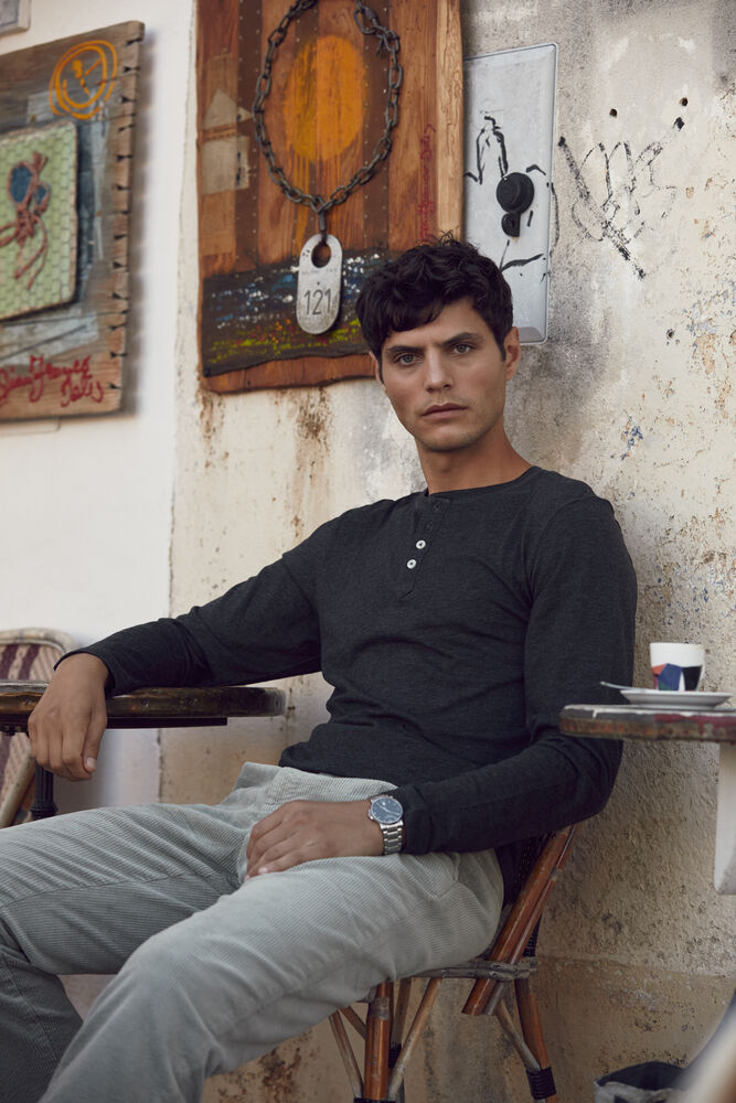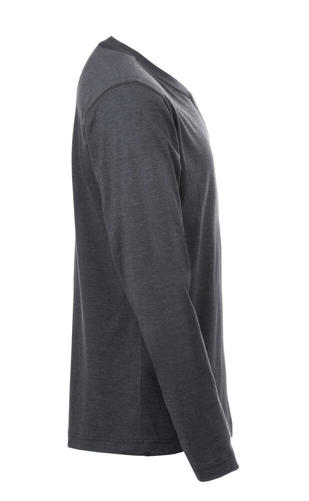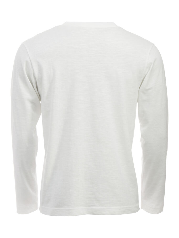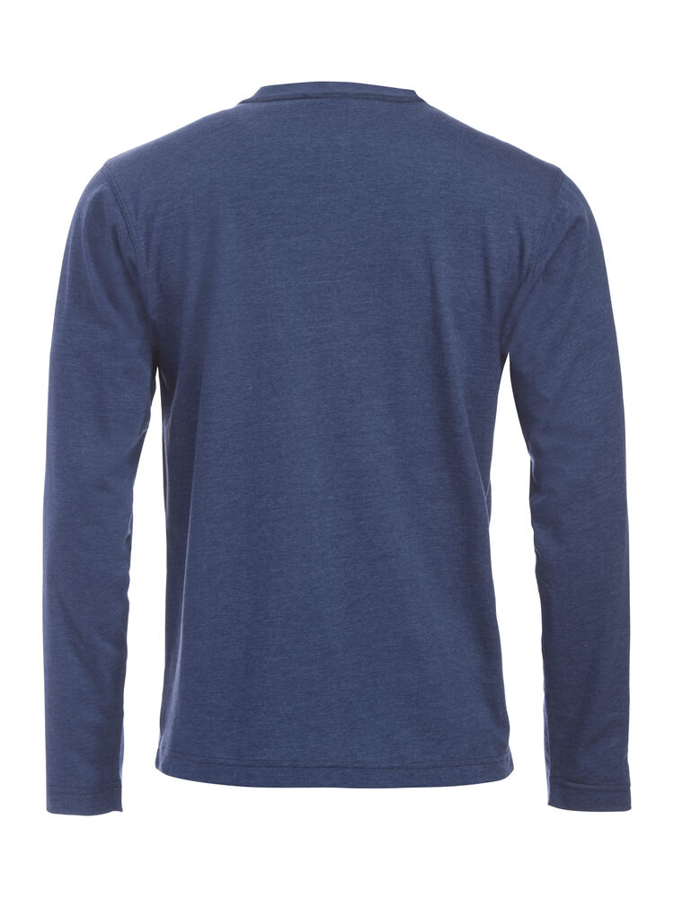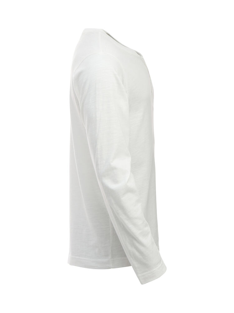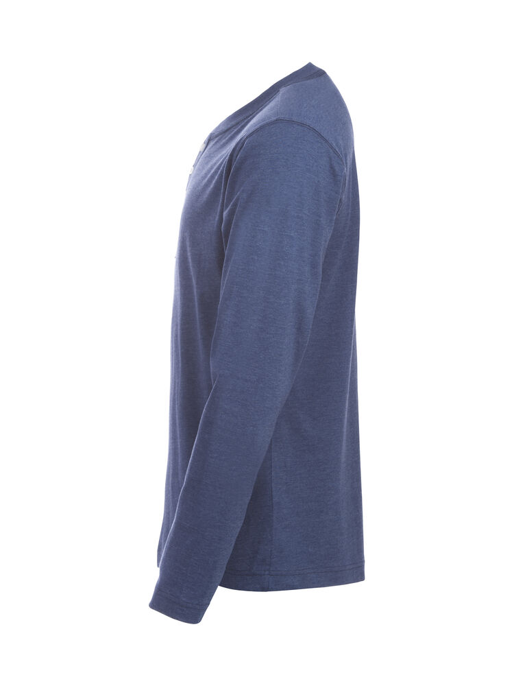 Langermet t-shirt, knappestolpe med 4 knapper på herremodellen og 5 på dame.
